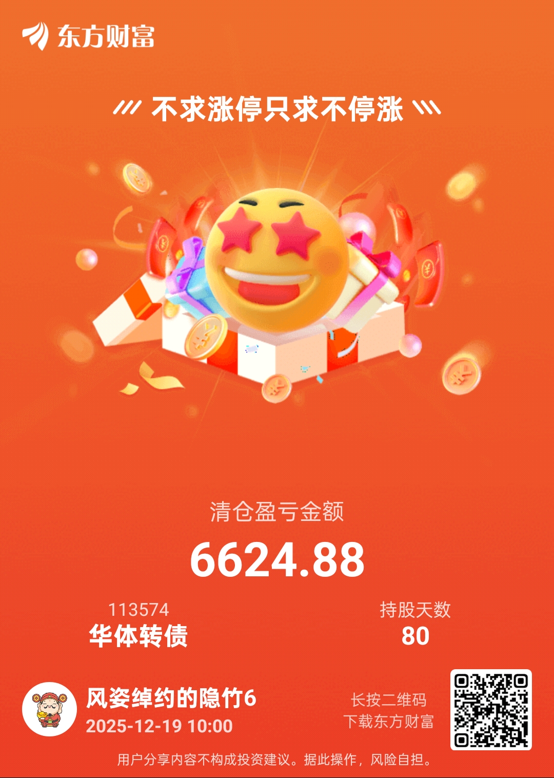 谢谢华体转债!这次真的要跟你说债见了!谢谢你陪伴我这么多年!让我赚了不少!谢谢!