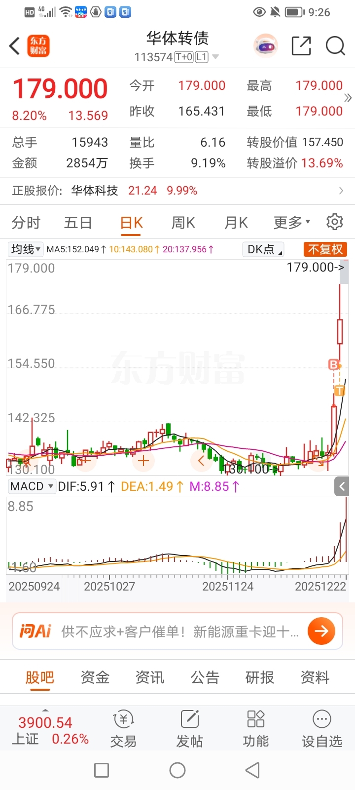 $华体转债(SH113574)$ 好不容易抓到一支爆涨债,被轻卖了