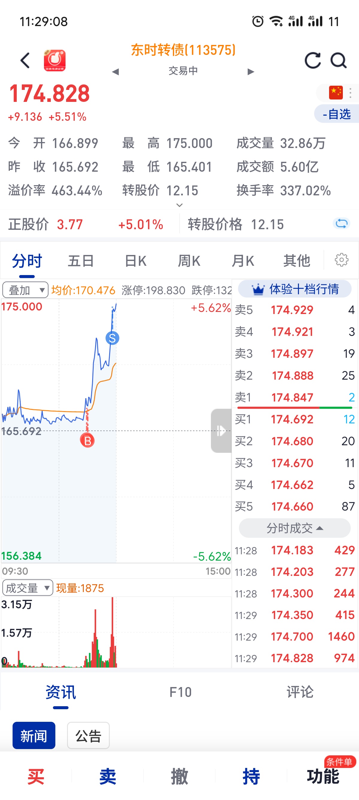 $东时转债(SH113575)$ 167.3买入。$ST东时(SH603377)$