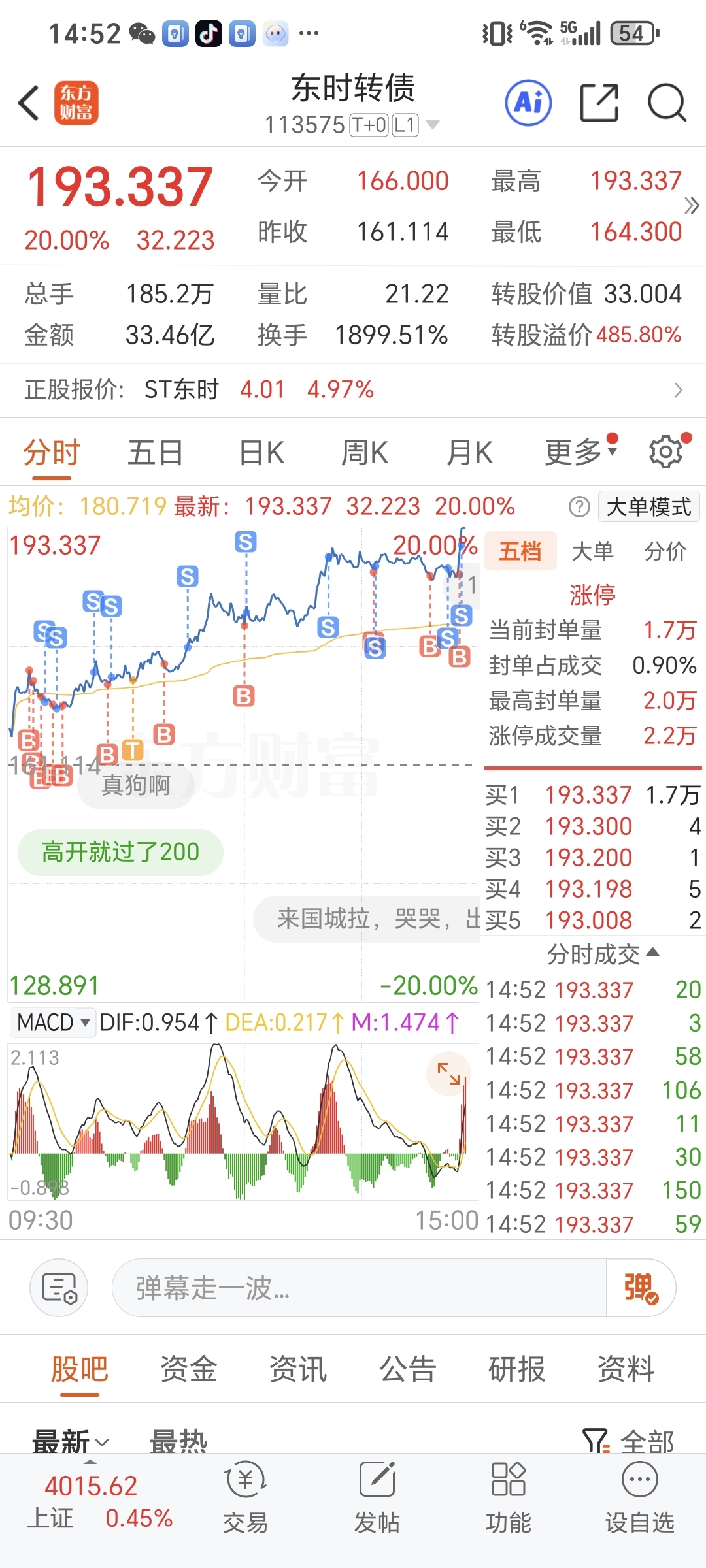 $东时转债(SH113575)$ 每次买你都拉,主力简直就是我亲爹,留3成底仓过夜了