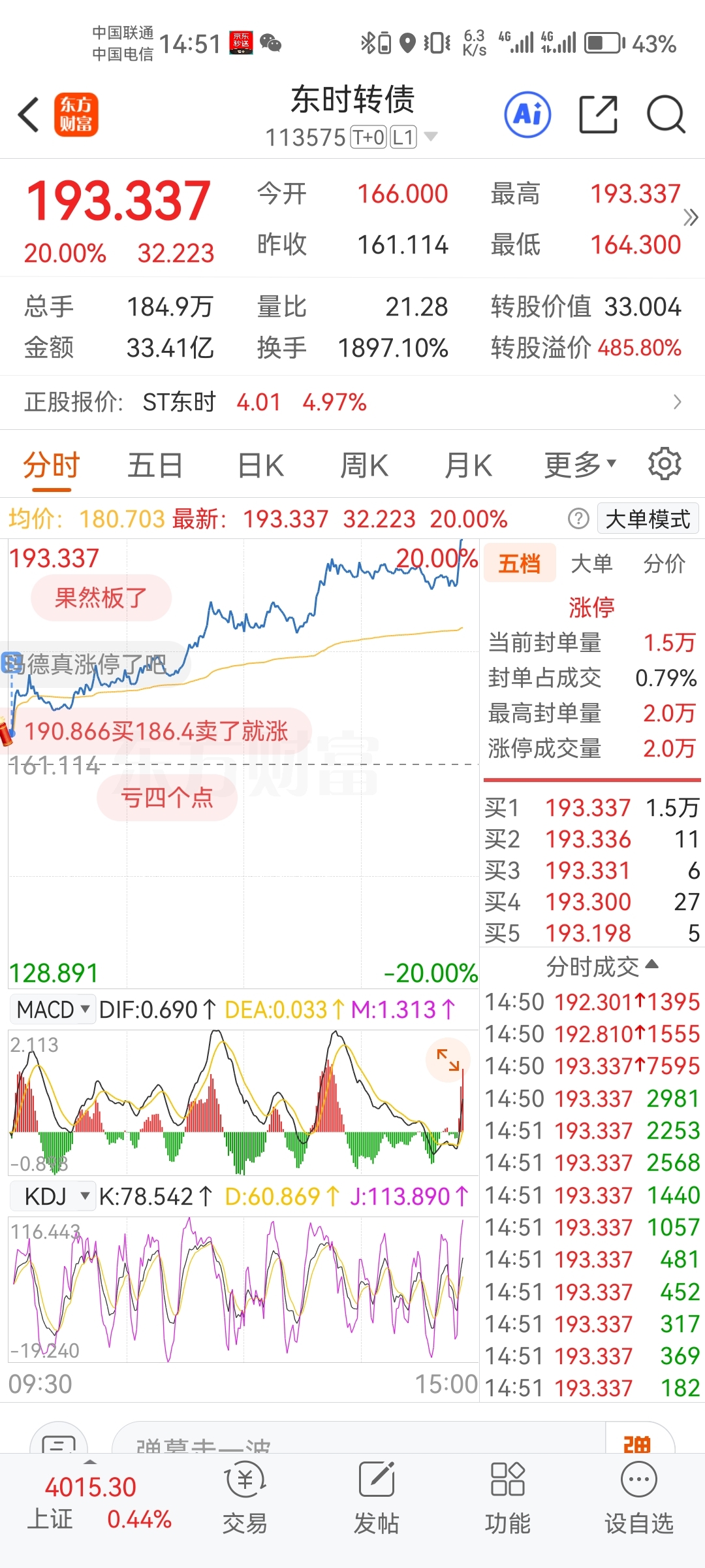 $东时转债(SH113575)$ 每天开盘冲高卖,收盘买,今天终于卖飞了。