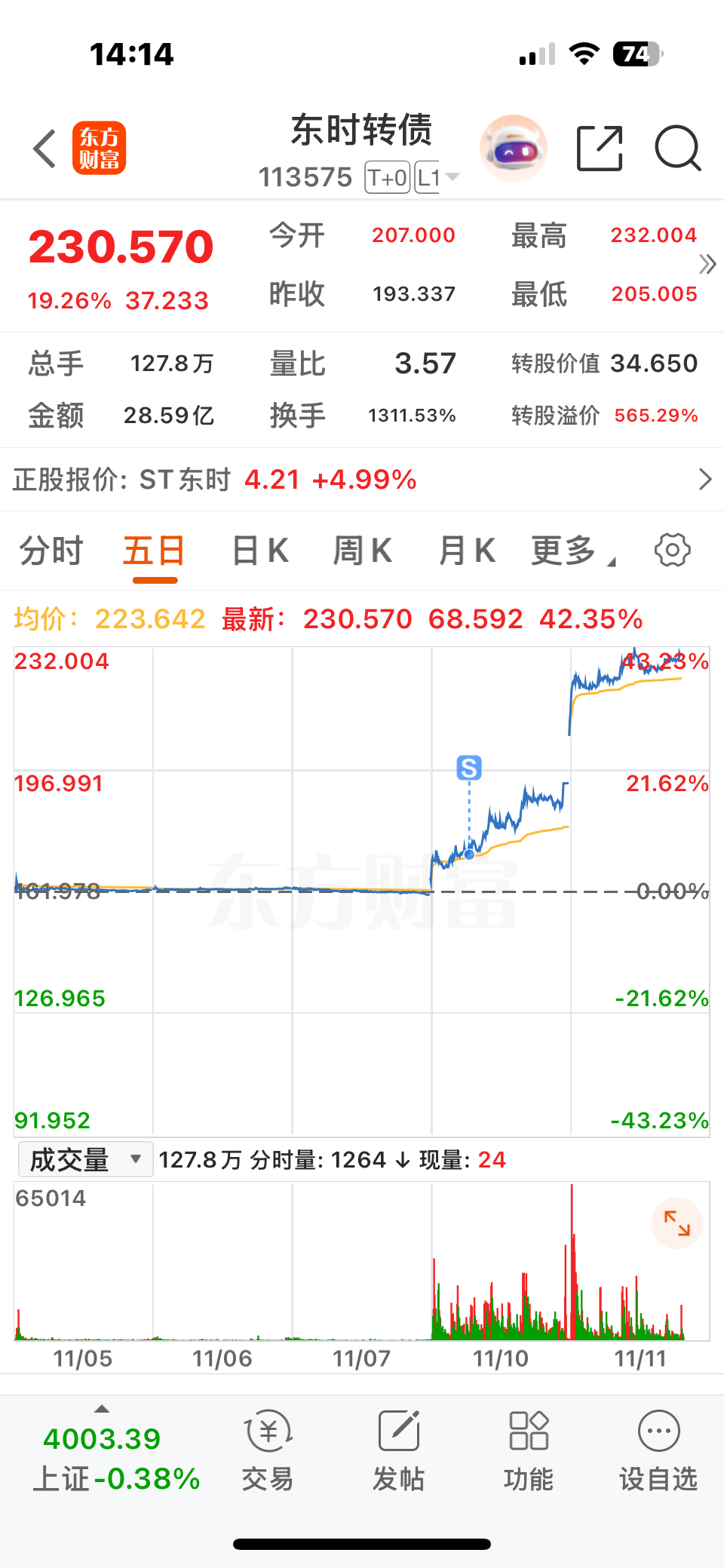 $东时转债(SH113575)$ 散户的悲哀,追了两个多月了,昨天172卖了