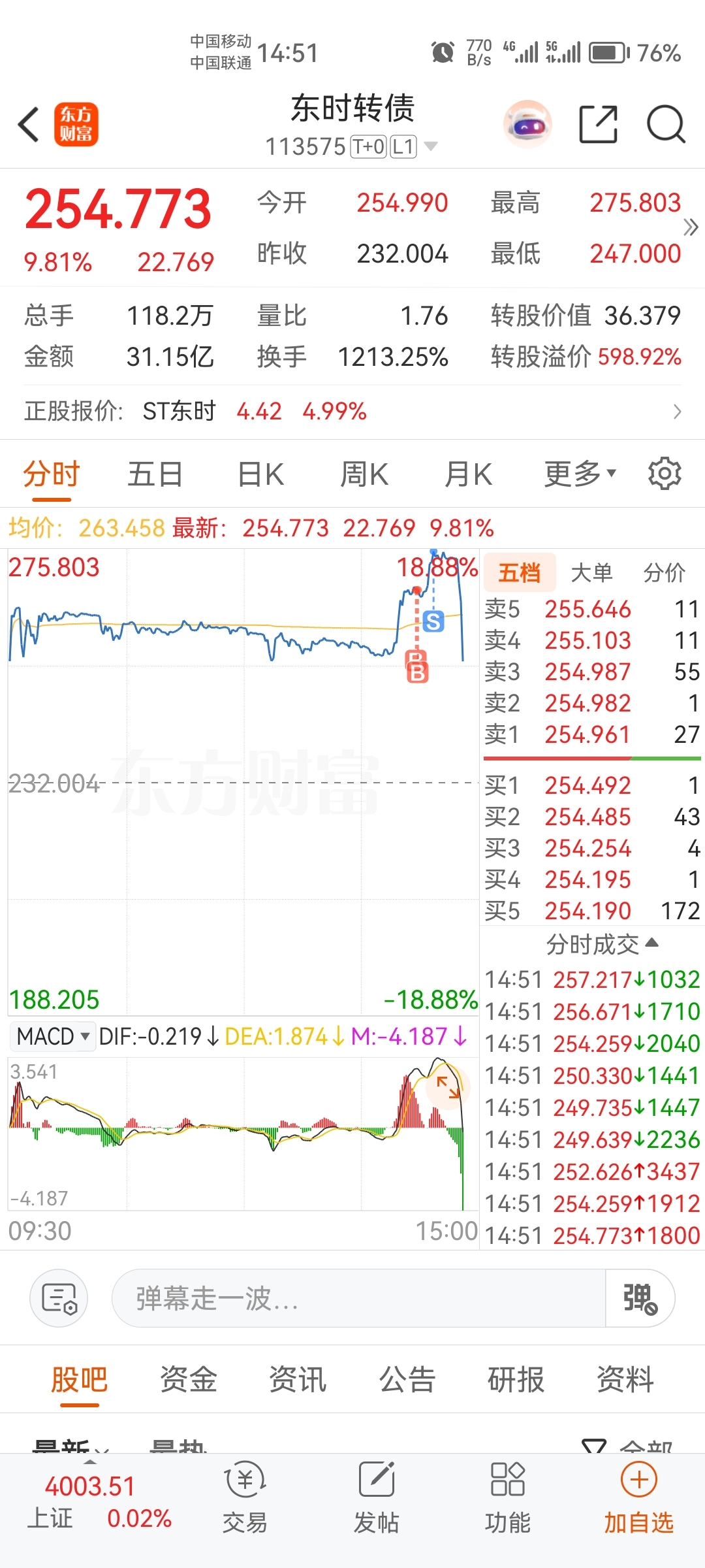 $东时转债(SH113575)$ 275卖了,就是这么刺激