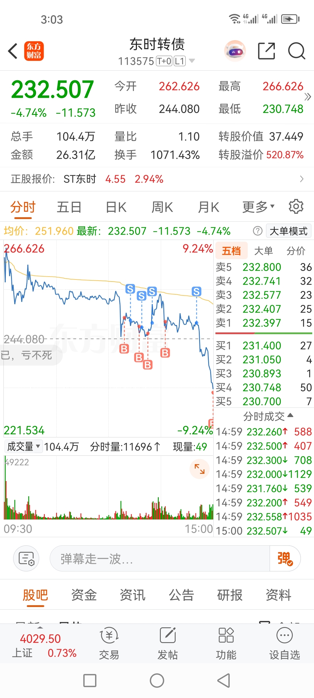 $东时转债(SH113575)$ 完犊子了,我不知道正股开板了,明天惨了