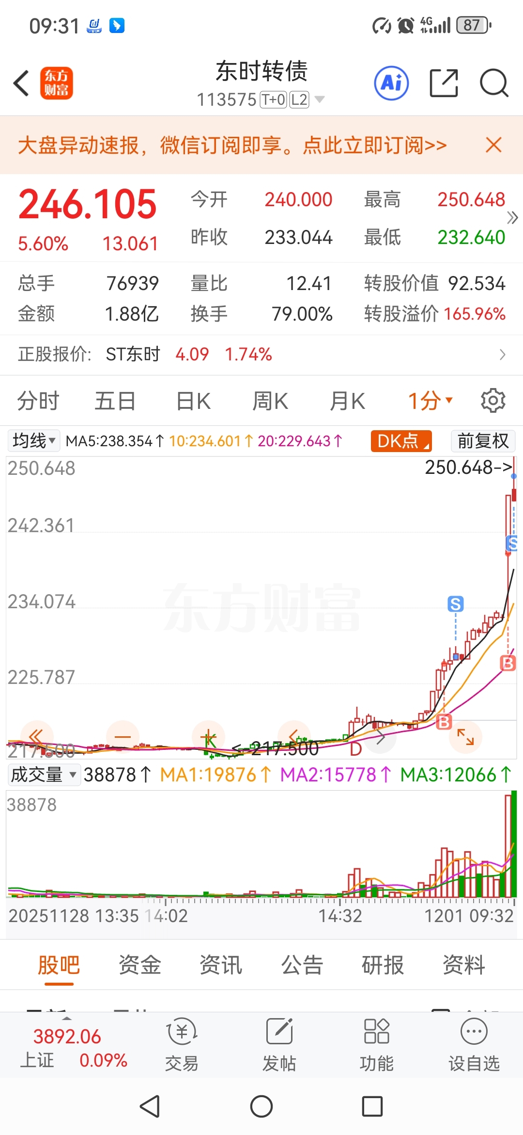 $东时转债(SH113575)$ 开盘价240买入,248.6卖出