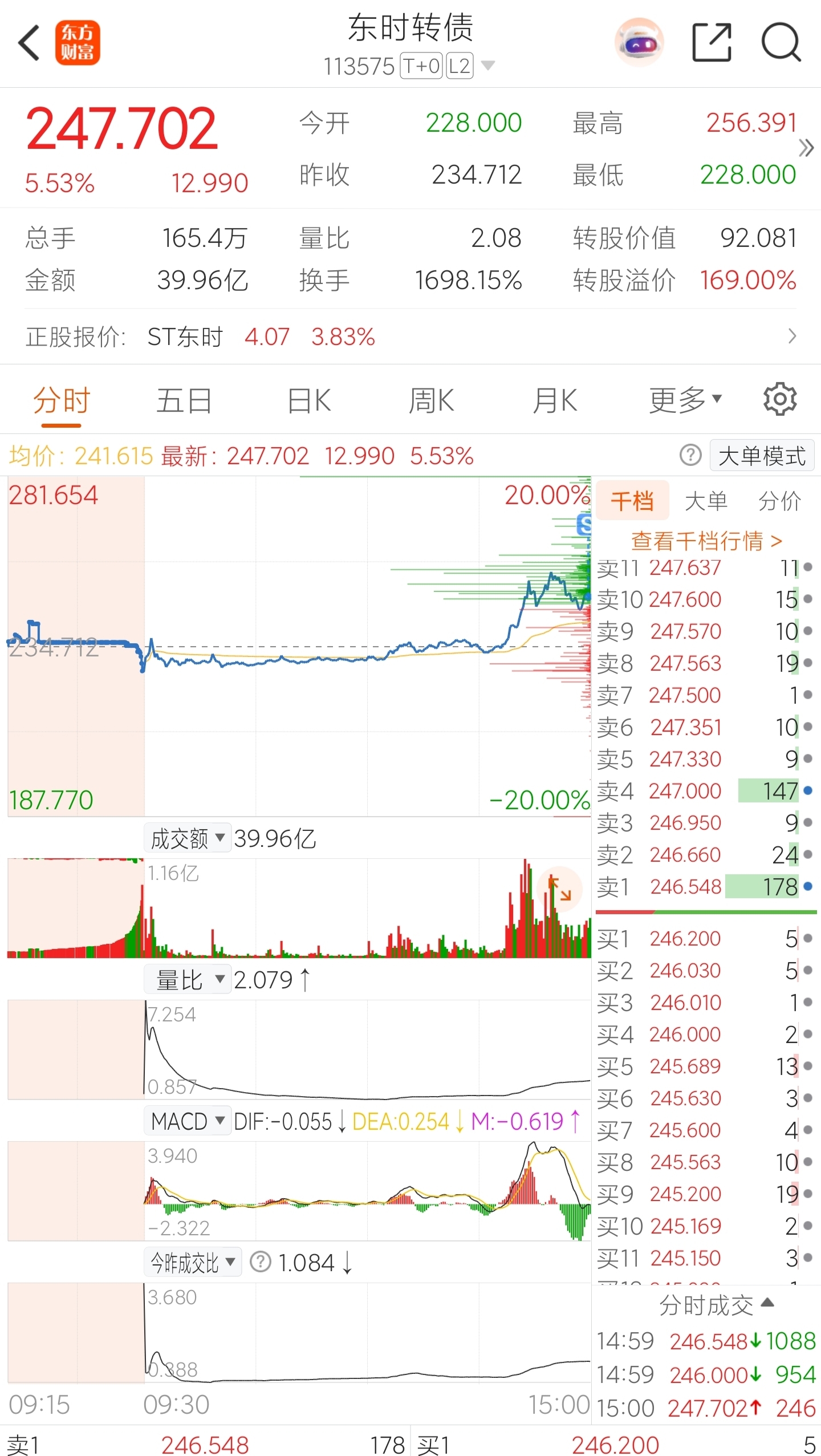 $东时转债(SH113575)$ 懦弱的主力啊,早上还想着今天有拉一根超级大阳线一直格局到最后两分钟,255我都没卖啊,忍痛248抛了
