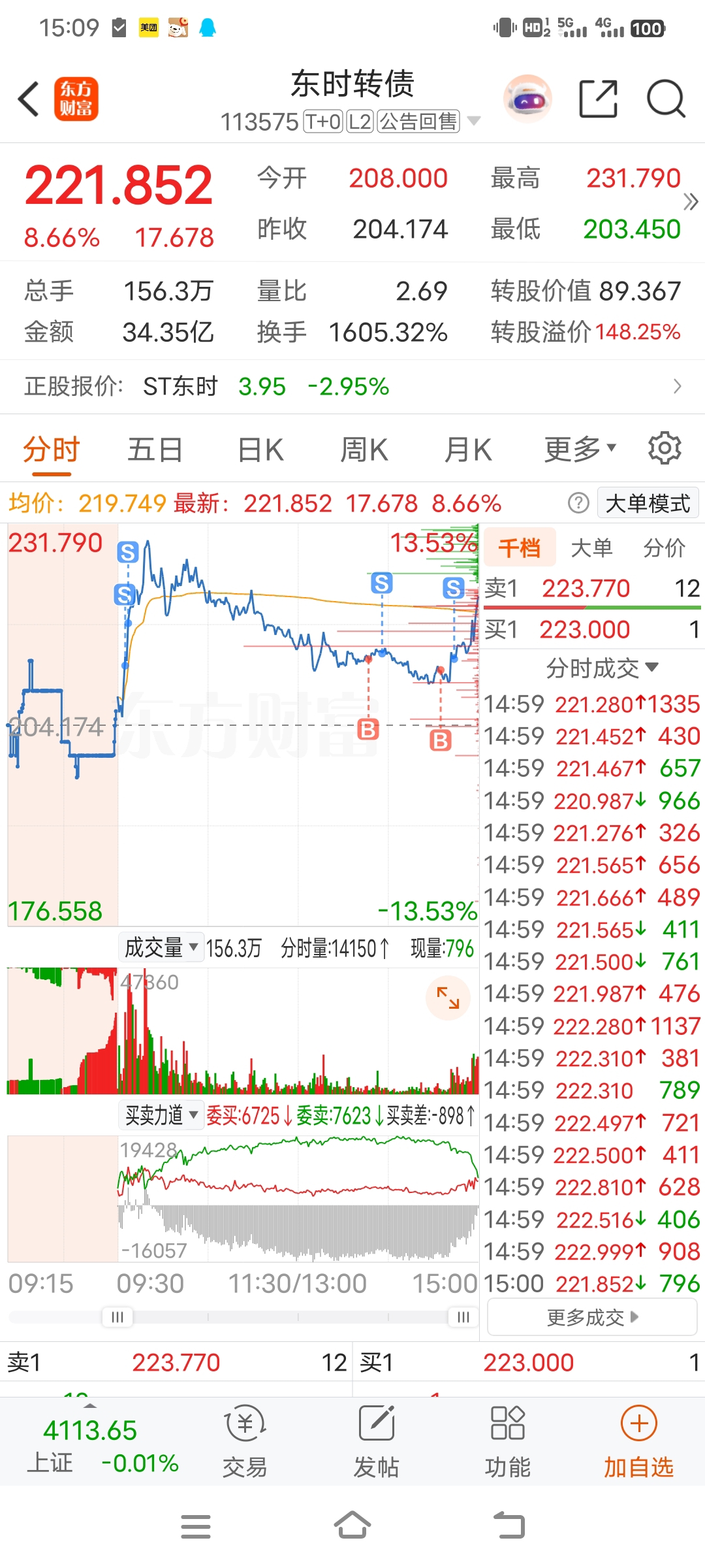 $东时转债(SH113575)$ 再见尾盘居然偷袭