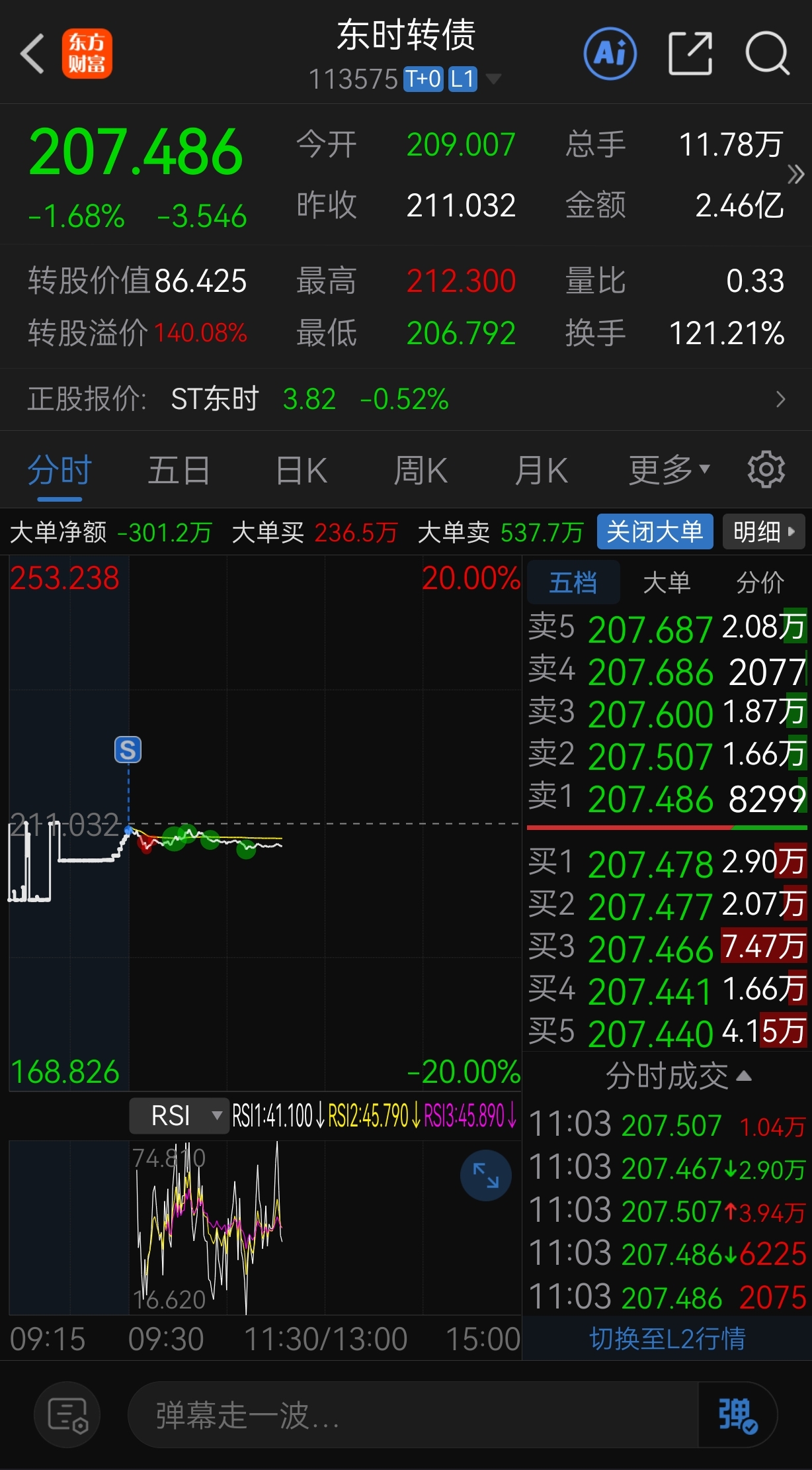 $东时转债(SH113575)$ 开盘割了,只掉44.