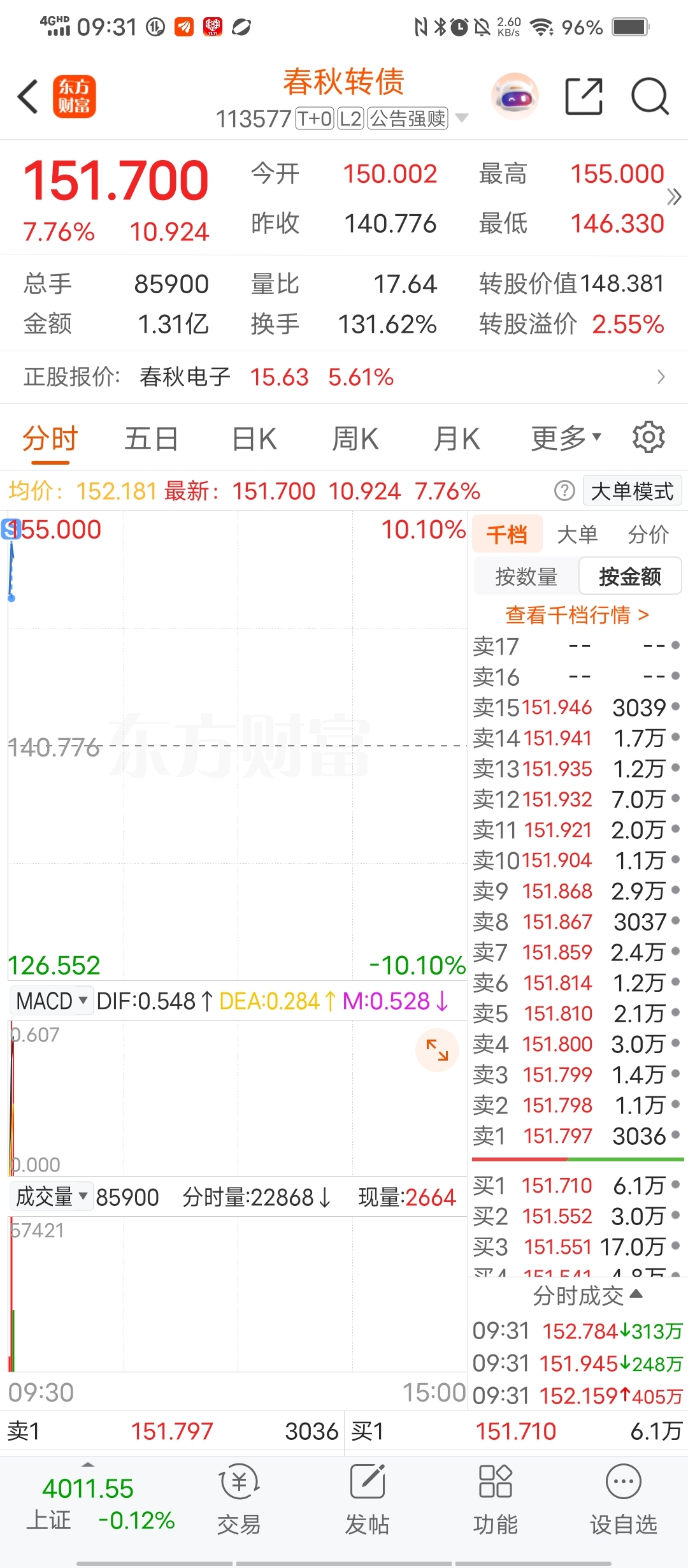 $春秋转债(SH113577)$ 早上总是夹着尾巴逃