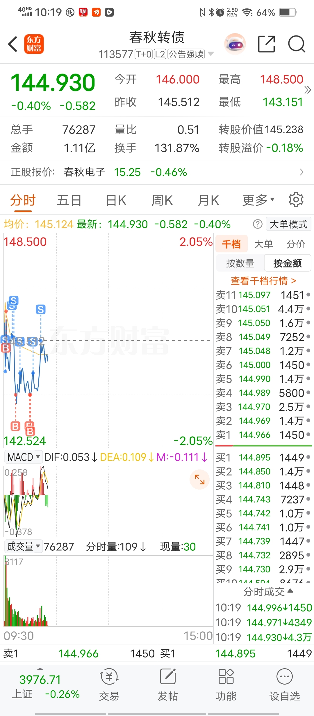 $春秋转债(SH113577)$ 春秋早上差点站岗,总算做赢了,还有一天冲浪