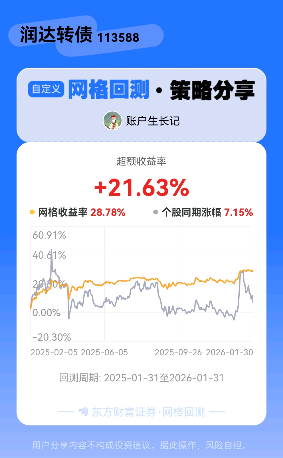 #条件单交流# #网格交易晒单#我使用网格交易回测了最关心的个股,朋友们走过路过看看我的收益~$润达转债(SH113588)$