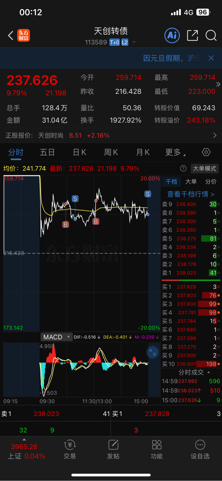 $天创转债(SH113589)$ 今天亏了五个点,真的难受