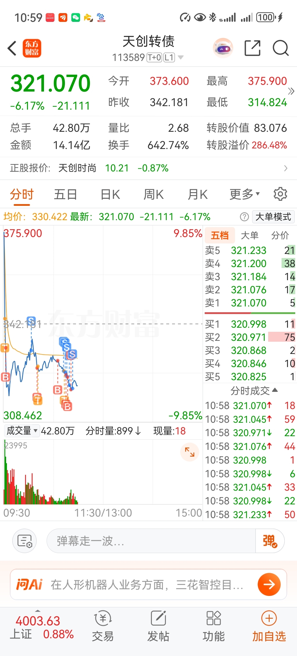 $天创转债(SH113589)$ 推演了几天嘉美,准备挂绿盘买,结果一早看天创跌幅快,刚绿盘341就全进了!命!去年新年第一天婚姻断舍离!今年开市第一天,转债断舍离!伤痕累累