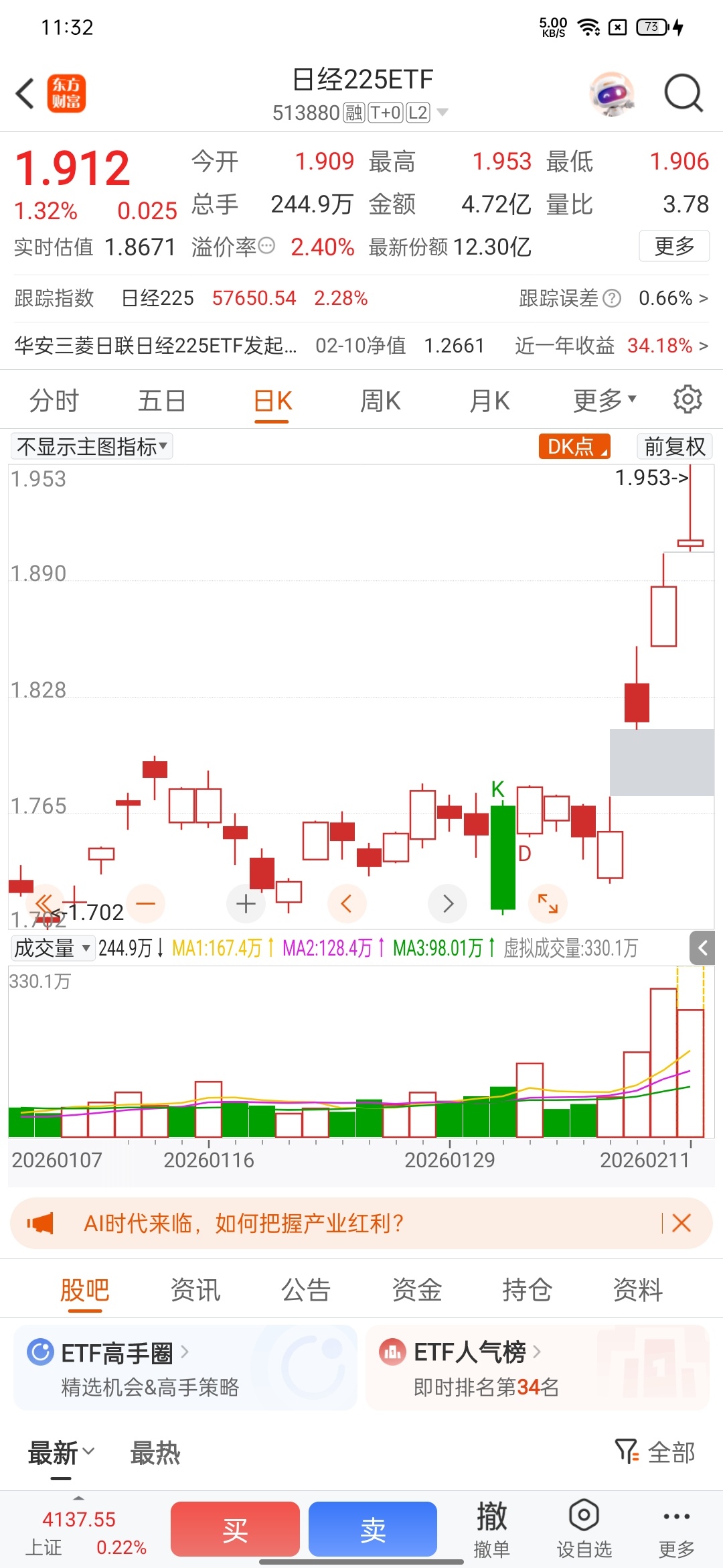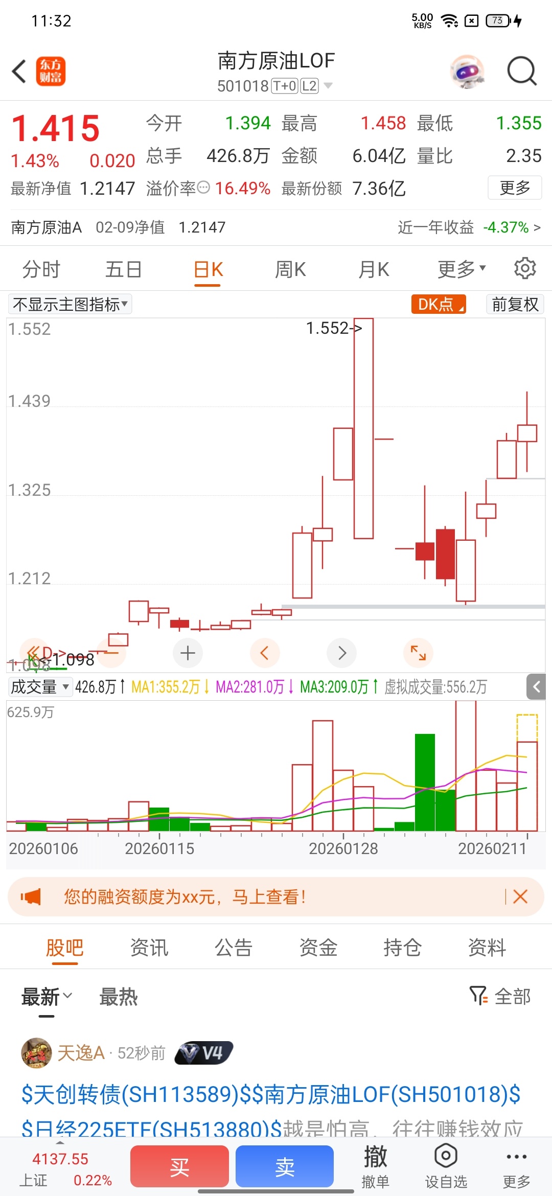 $天创转债(SH113589)$ $南方原油LOF(SH501018)$ $日经225ETF(SH513880)$ 越是怕高,往往赚钱效应越好又快,杂毛更容易血亏。
