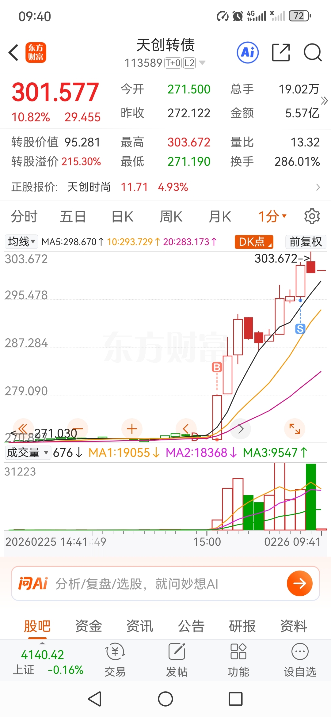 $天创转债(SH113589)$ 开盘价271买入,295卖出,卖早了