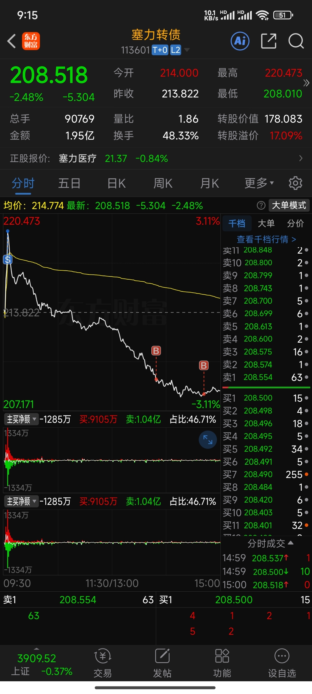 $塞力转债(SH113601)$ 辛苦早上跑了一半