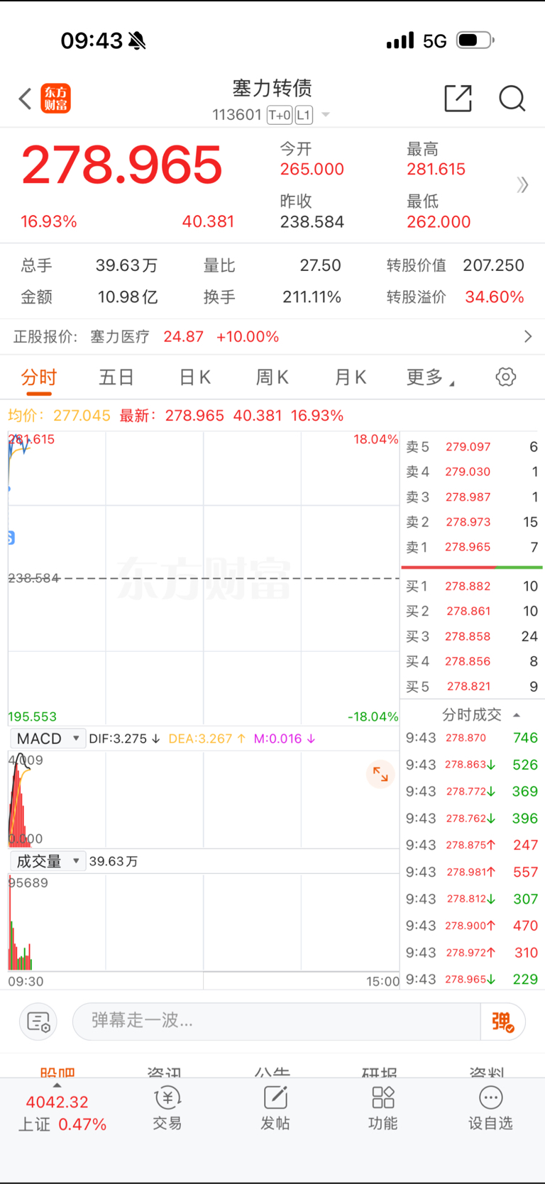 $塞力转债(SH113601)$ 集合竞价走完了,少挣一万多