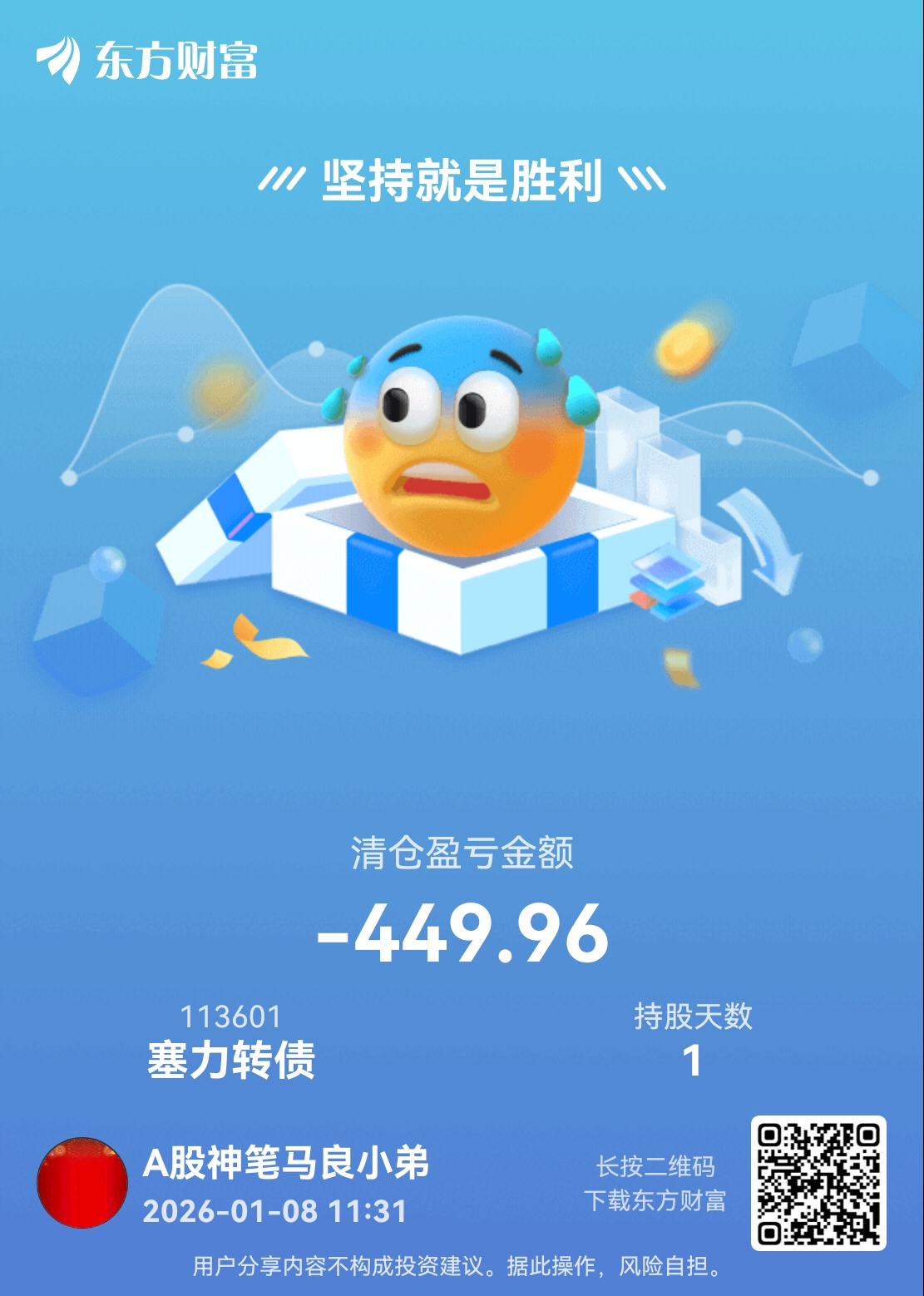 温馨提示: 1.根据《证券法》规定,禁止编造、传播虚假信息或者误导性信息,扰乱证券市场;2.用户在本社区发表的所有资料、言论等仅代表个人观点,与本网站立场无关,不对您构成任何投资建议。用户应基于自己的独立判断,自行决定证券投资并承担相应风险。《东方财富社区管理规定》