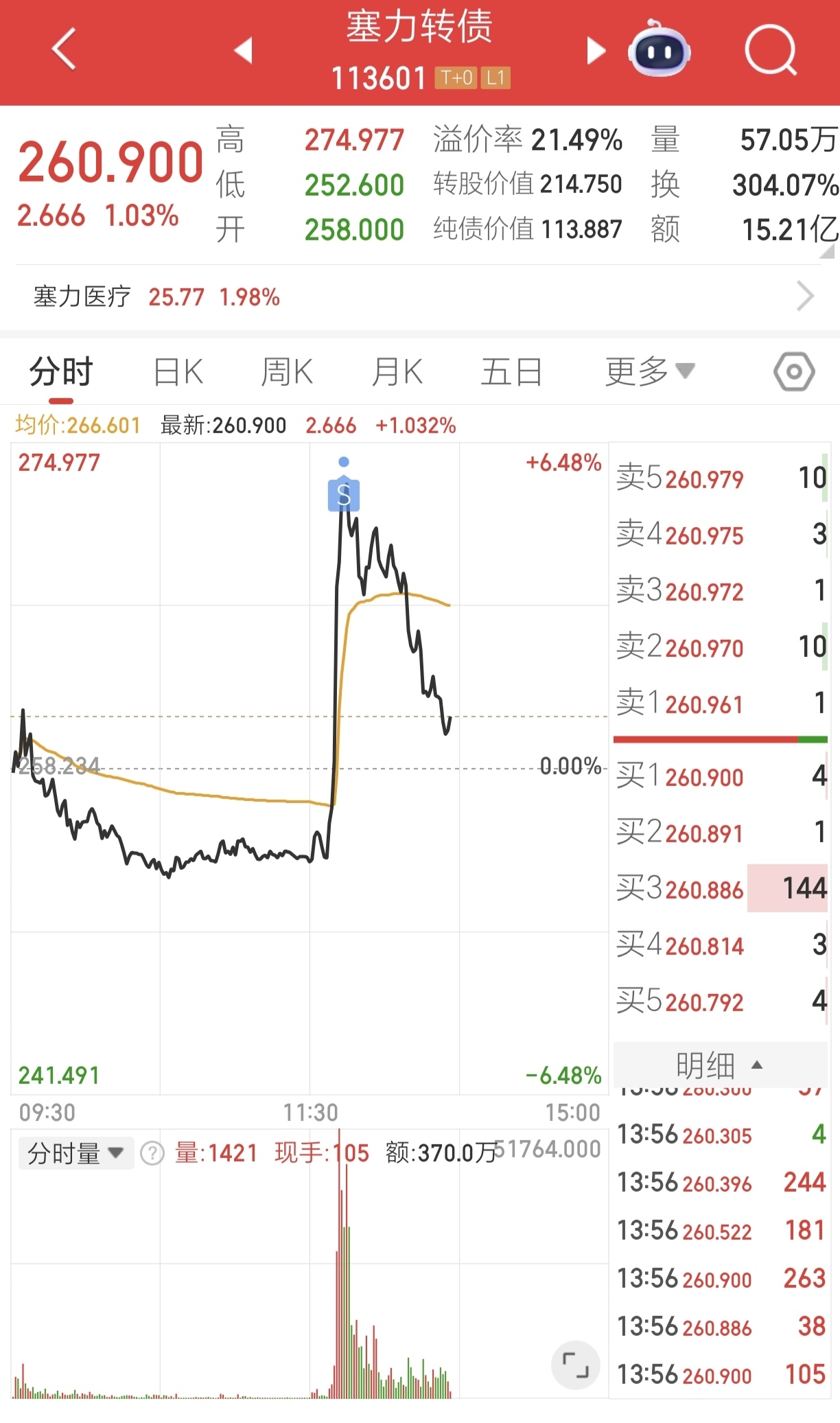 $塞力转债(SH113601)$ 就10张,跑的及时