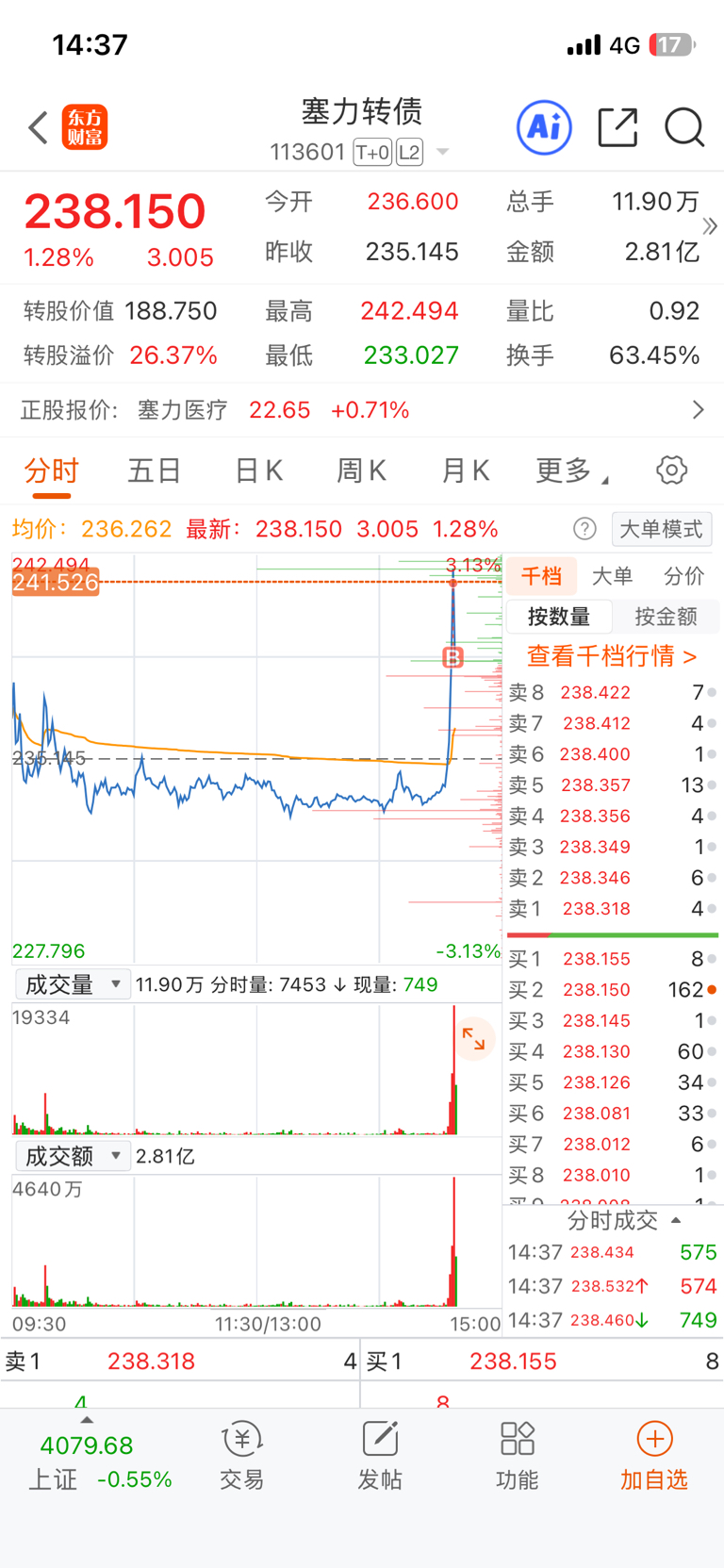 $塞力转债(SH113601)$ 每次进来都挂山尖尖 为什么?