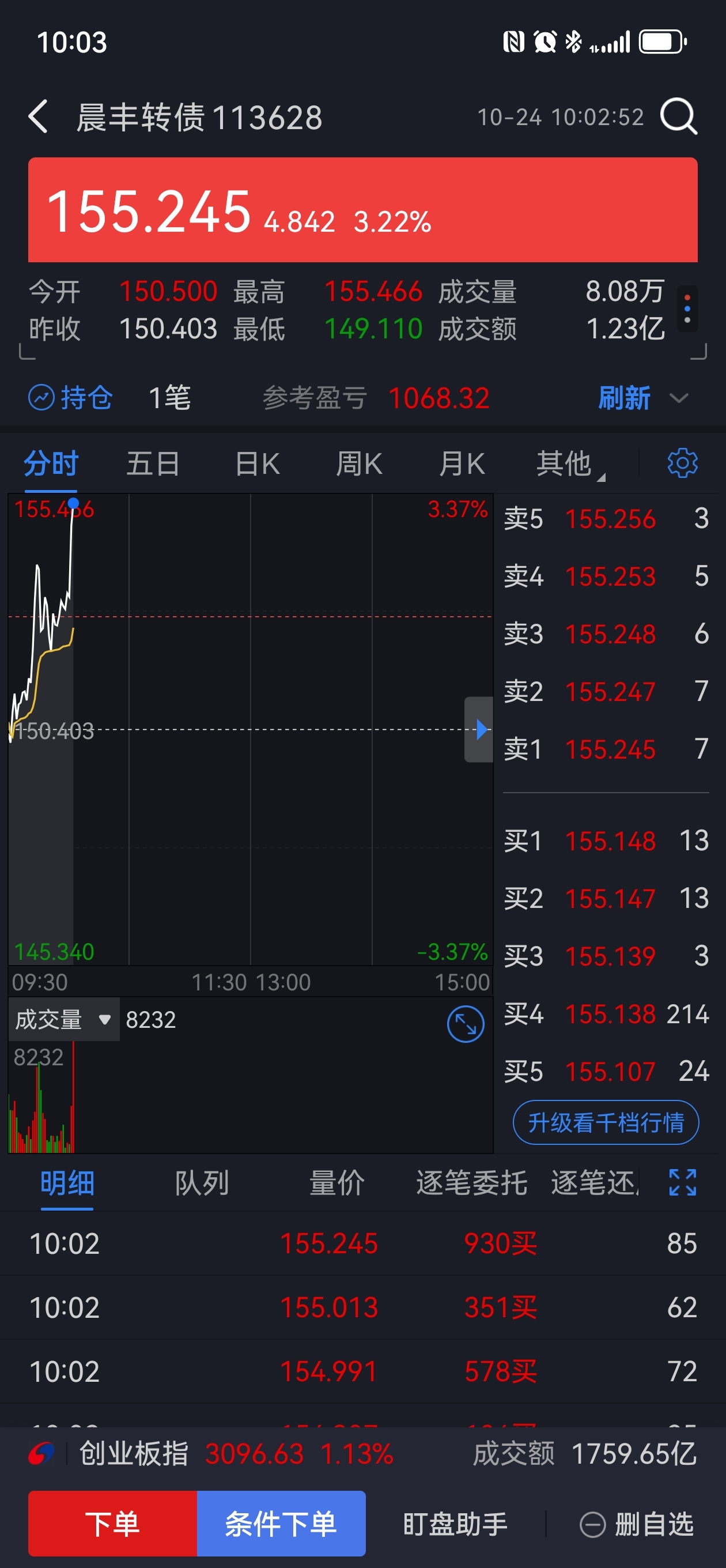 1. $晨丰转债(SH113628)$ 踩准节奏,昨日尾盘从容布局,今日顺利落袋,每一步都走得稳当。