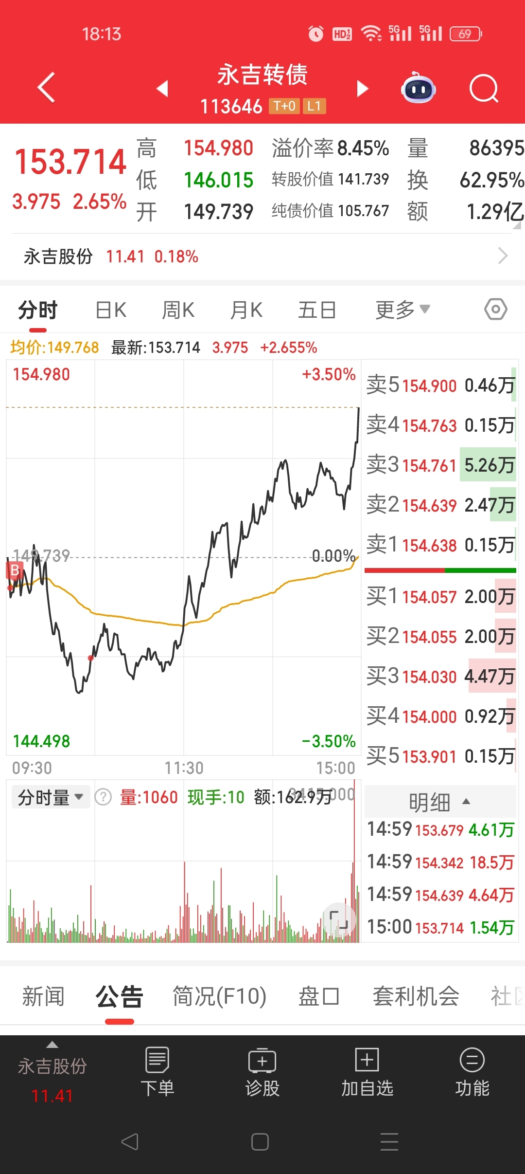 $永吉转债(SH113646)$ 明天能赚吗