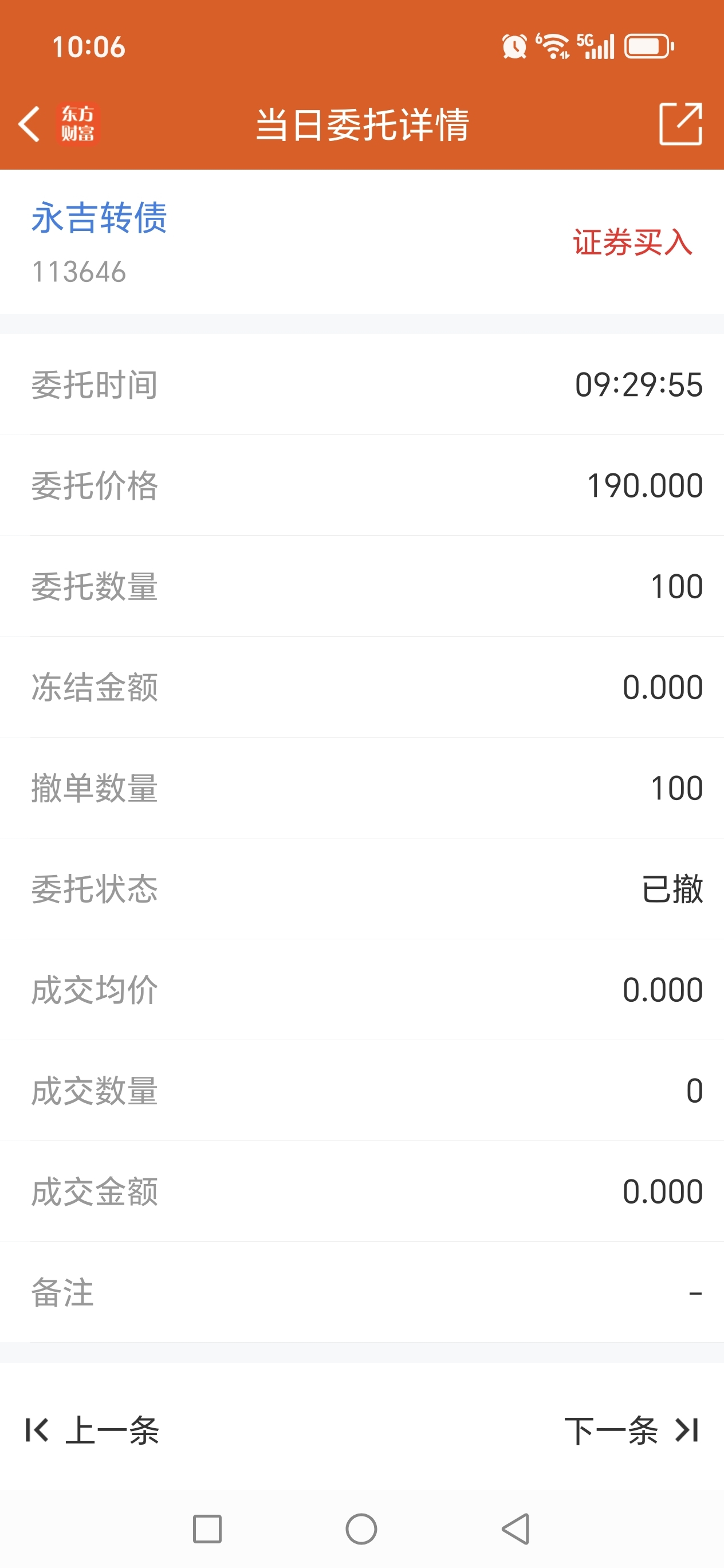 $永吉转债(SH113646)$ 集合竞价挂的190,没买进去立马撤单了。
