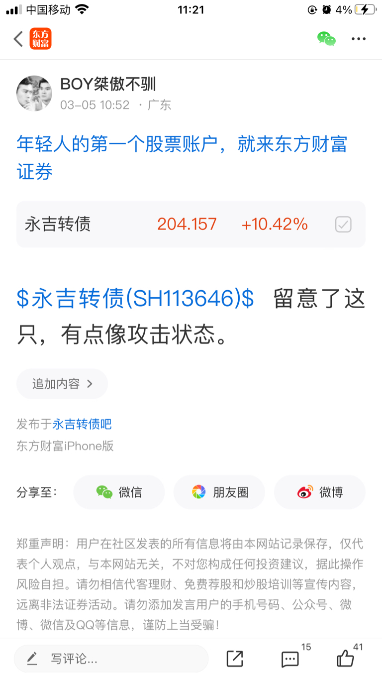 温馨提示: 1.根据《证券法》规定,禁止编造、传播虚假信息或者误导性信息,扰乱证券市场;2.用户在本社区发表的所有资料、言论等仅代表个人观点,与本网站立场无关,不对您构成任何投资建议。用户应基于自己的独立判断,自行决定证券投资并承担相应风险。《东方财富社区管理规定》