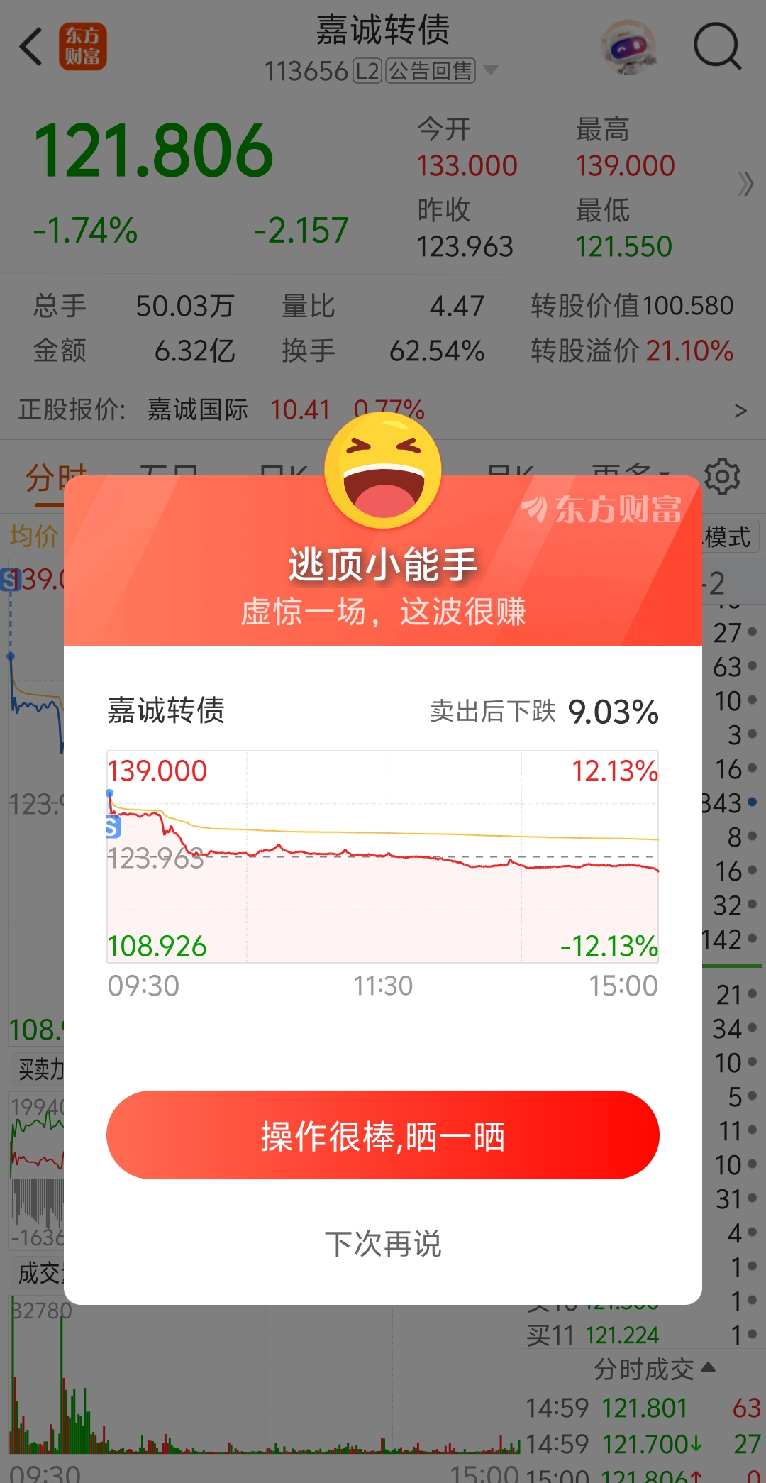$嘉诚转债(SH113656)$ 昨天尾盘竞价买的,隔夜7个多点半仓,舒服了