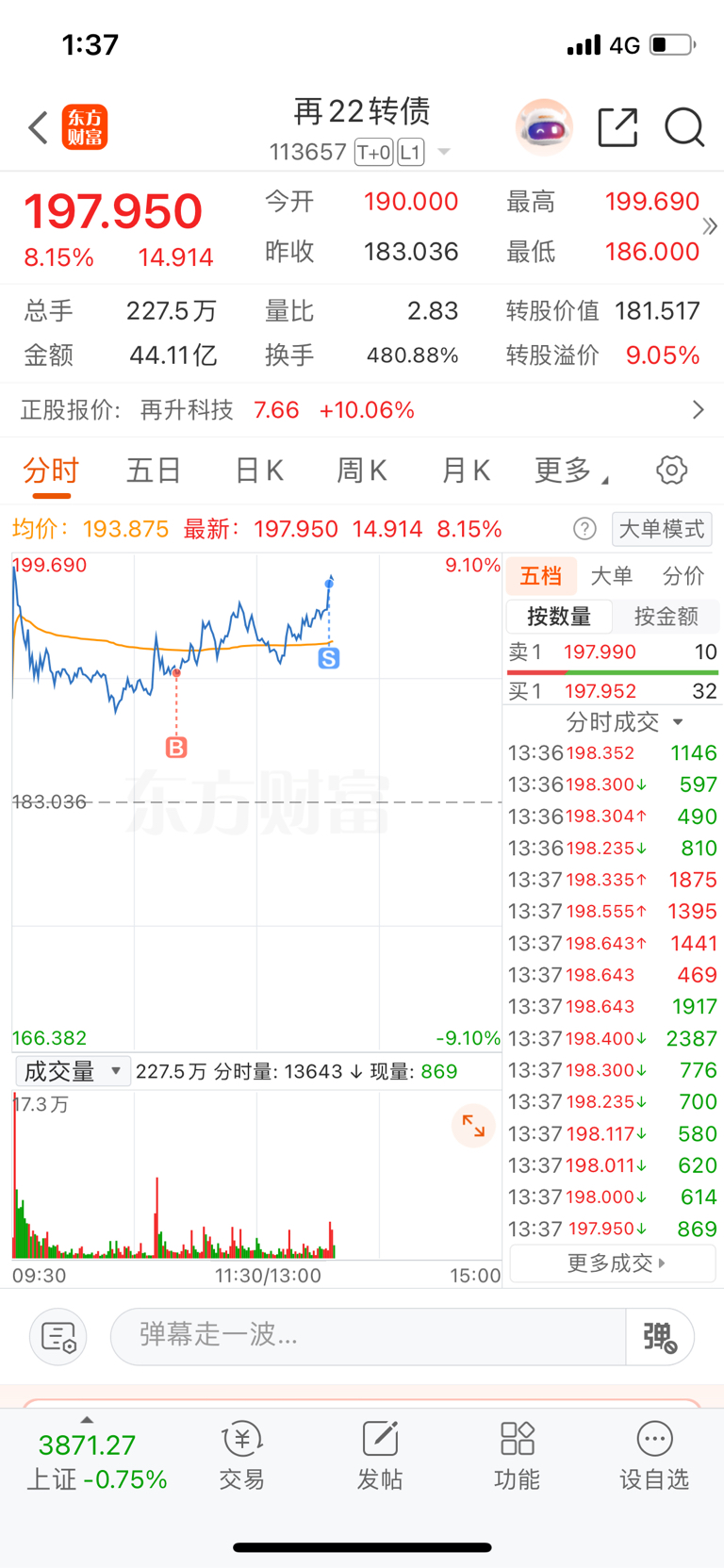 $再22转债(SH113657)$ 300张,赚6块一张够了,谢谢主力