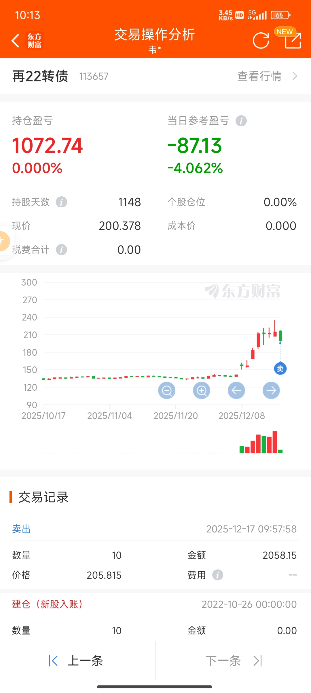 $再22转债(SH113657)$ 跑了,上来一看,有的赚了