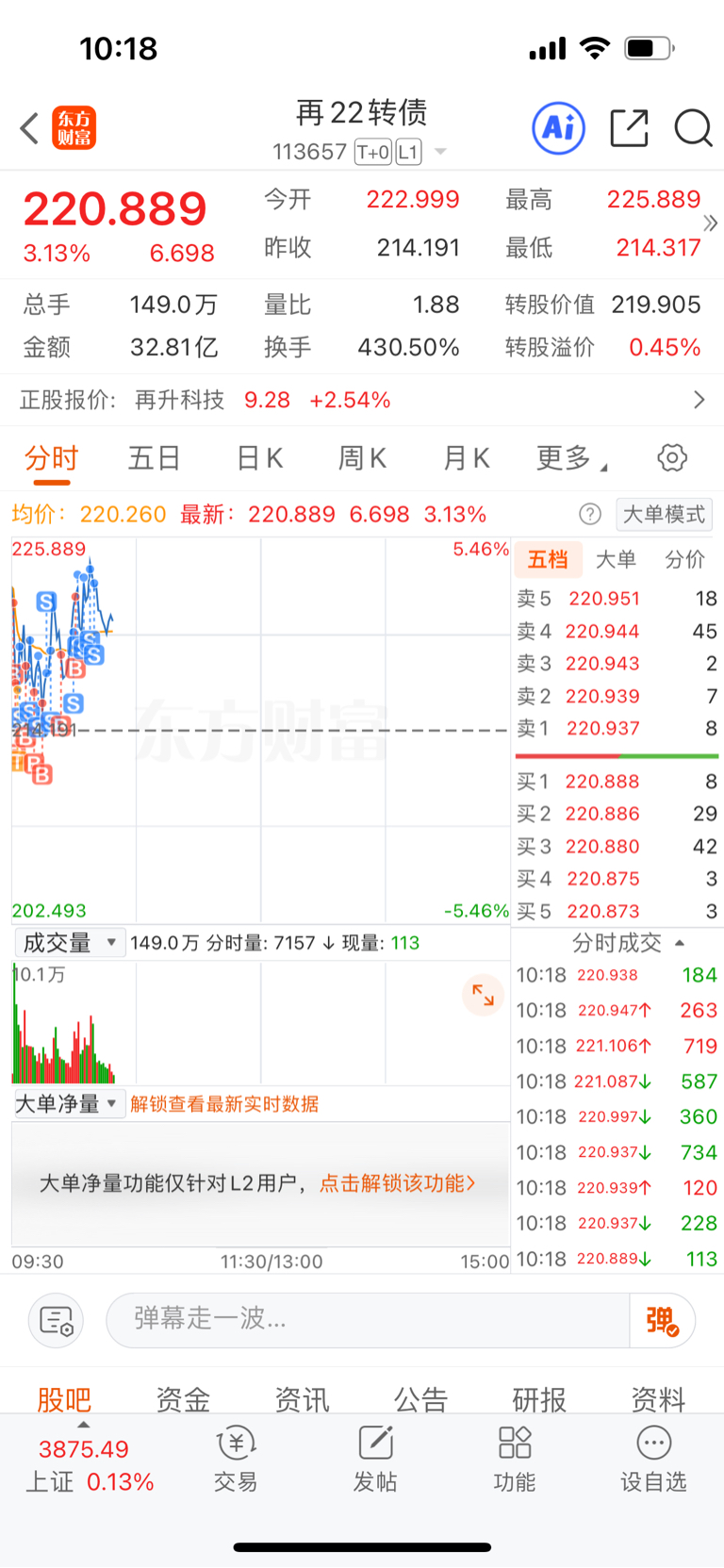 $再22转债(SH113657)$ 突破新高还是需要磨练散户的意志,还是落袋为安吧