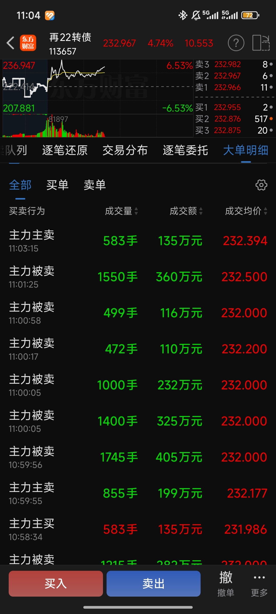 $再22转债(SH113657)$ 大单越卖越涨,那会是谁接呢