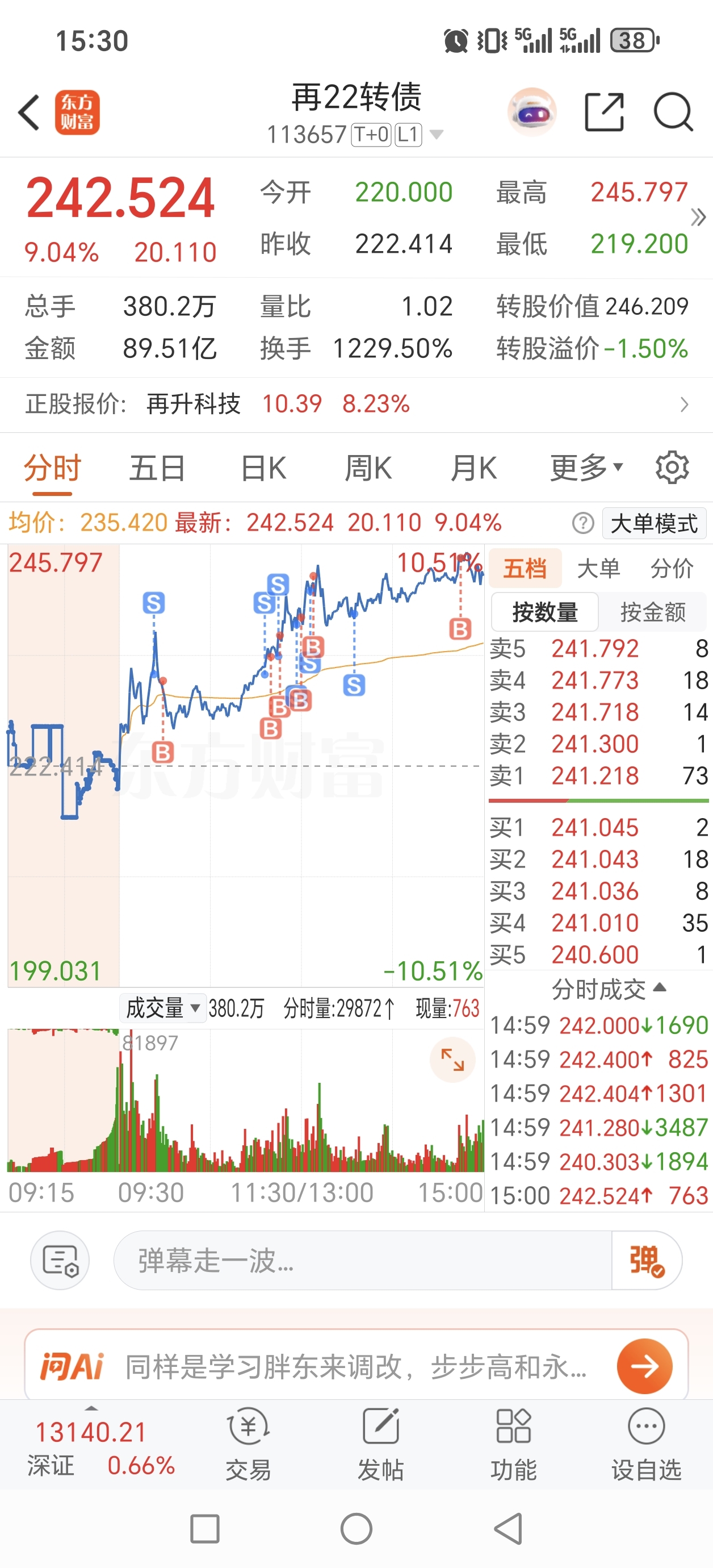 $再22转债(SH113657)$ 哈哈哈哈我是菜逼