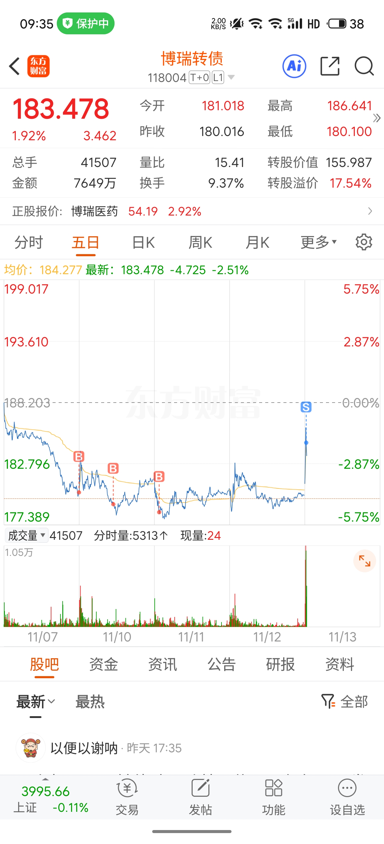 $博瑞转债(SH118004)$ 抱了几天都没走