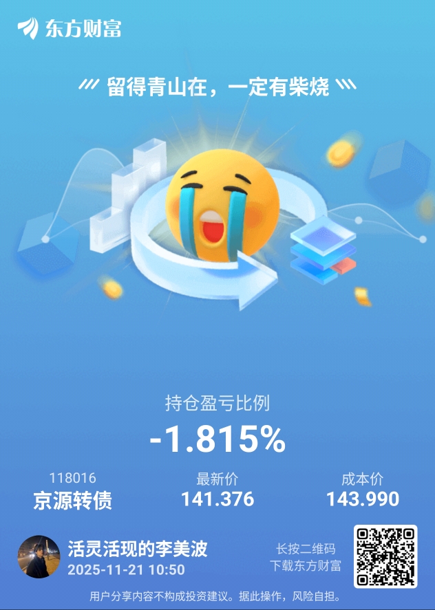 $京源转债(SH118016)$ 没钱加仓了,全仓了