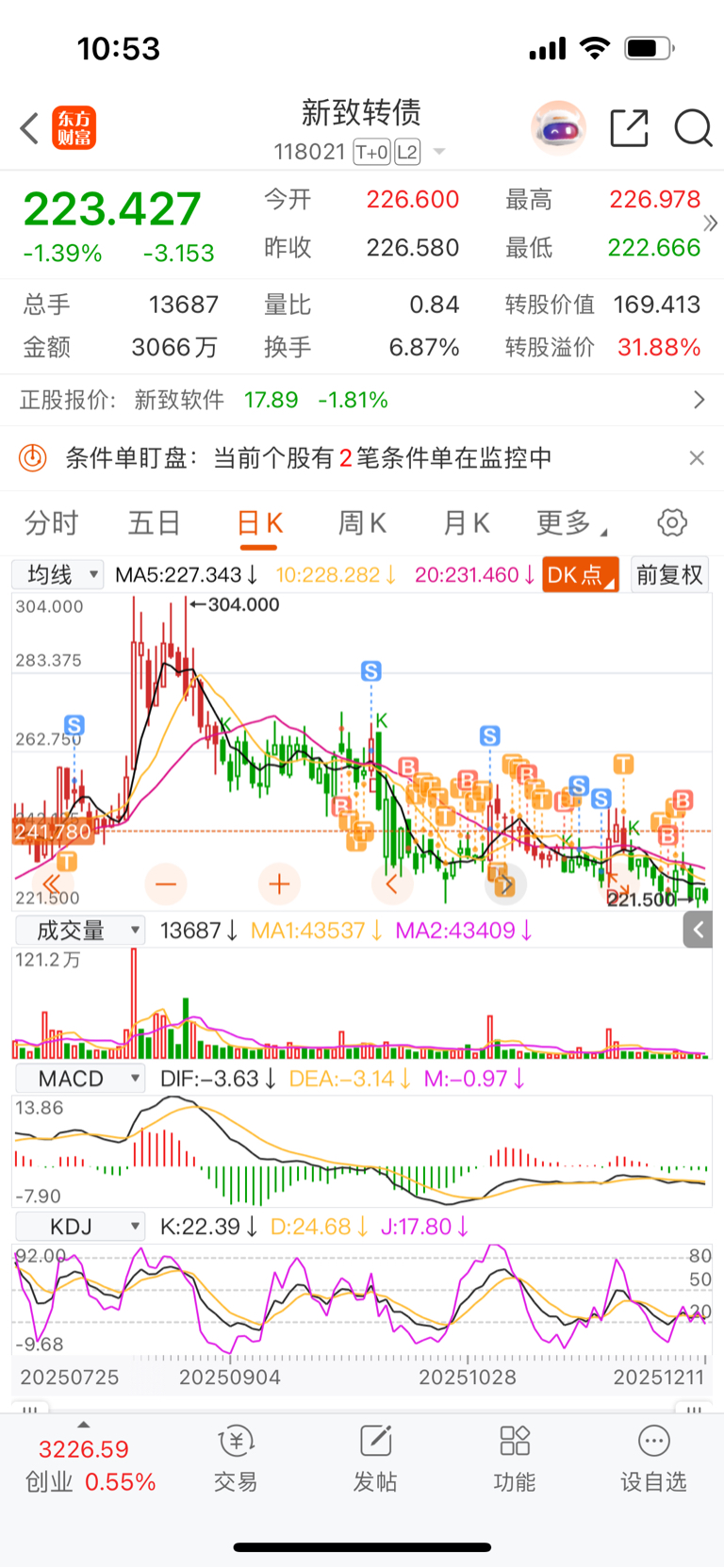 $新致转债(SH118021)$ 卖掉就大涨,第二天追高又被套,套好久回本卖掉,继续涨,好了又追高被套,现在好了一直跌