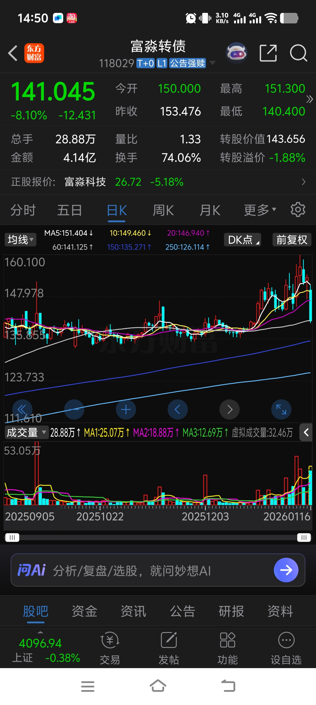 $富淼转债(SH118029)$ 哎,今天上了元气。这么长的阴线
