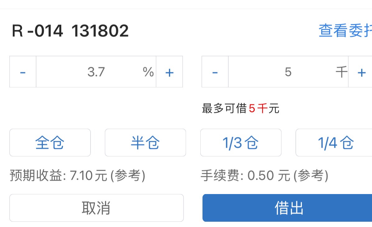 $R-014(SZ131802)$这个是5千按借出14天能到账7块钱吗?