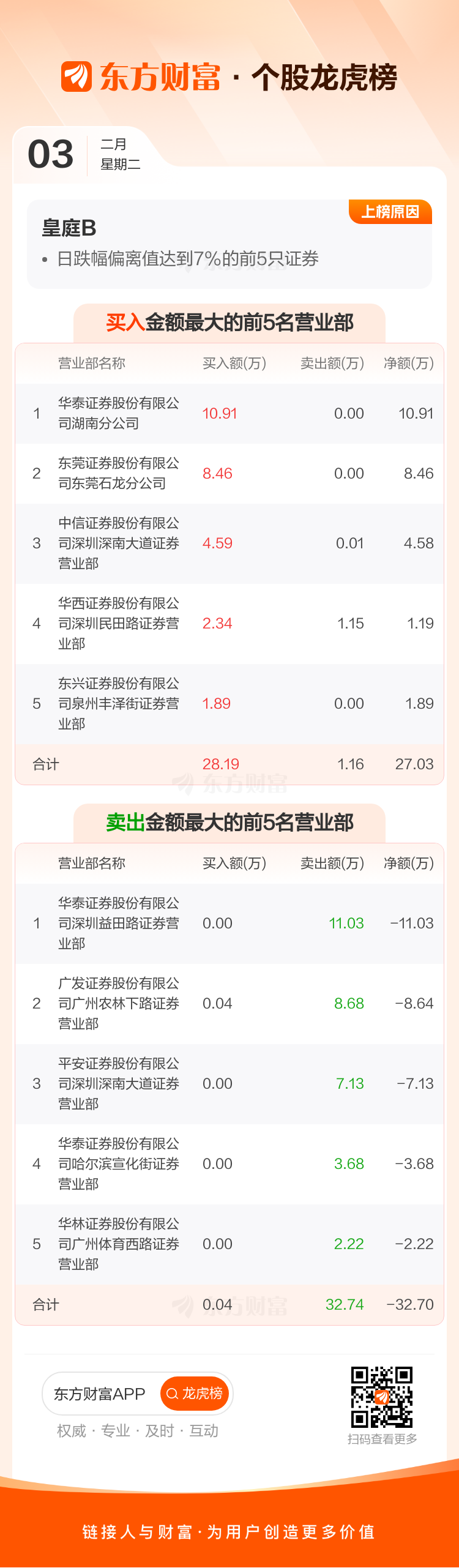 皇庭B(200056)龙虎榜数据(02-03)