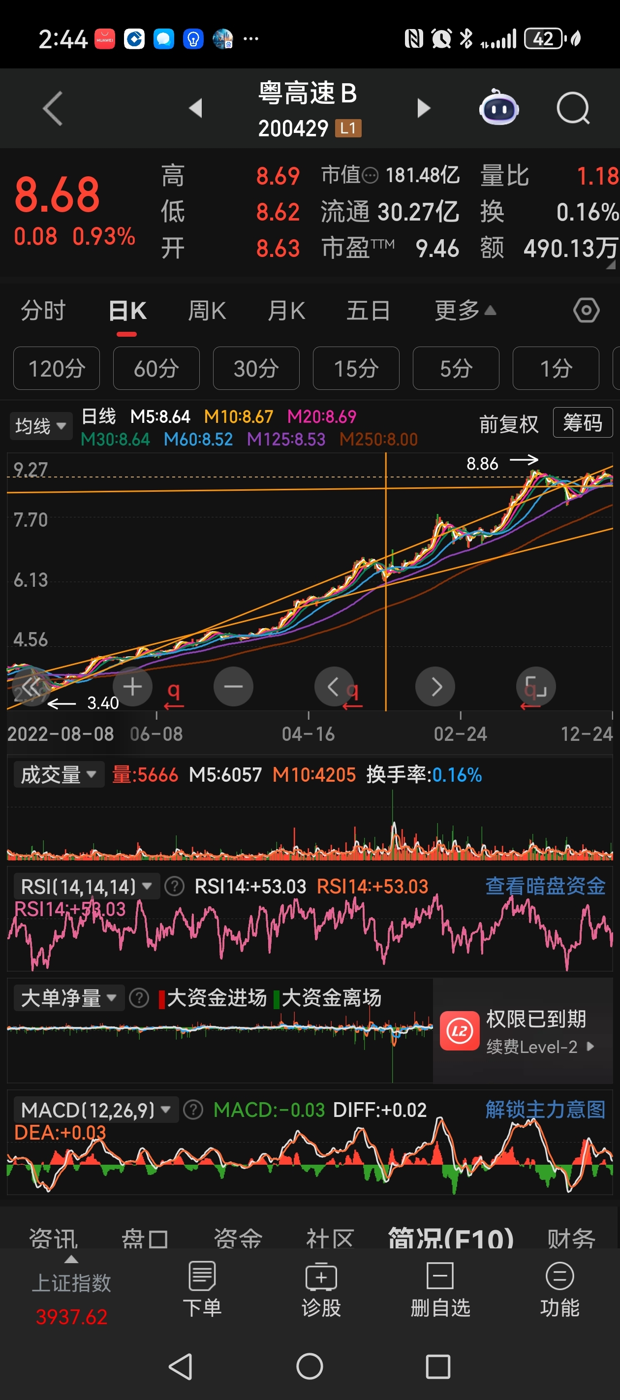 $粤高速B(SZ200429)$ 目前B股在年线250 天 半年线125天 60天均线之上,并且依然牛市排列向上的股票只有2个,宁通讯短期均线走好,但跌破60天均线的中期均线,并且60天均线掉头向下预示60天级别的周期压力加大,过去1年多突破250天年线后,首月2次刺破年线250天均线,刺破预示支撑有限,最终结果会有效跌破,只要破年线4.03-4.06必须警惕年度级别的下跌熊市。