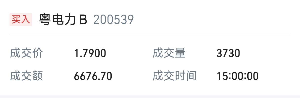 收盘时买入3730股粤电力b。我是首次买入粤电力b。个人认为,广东省的经济好坏对