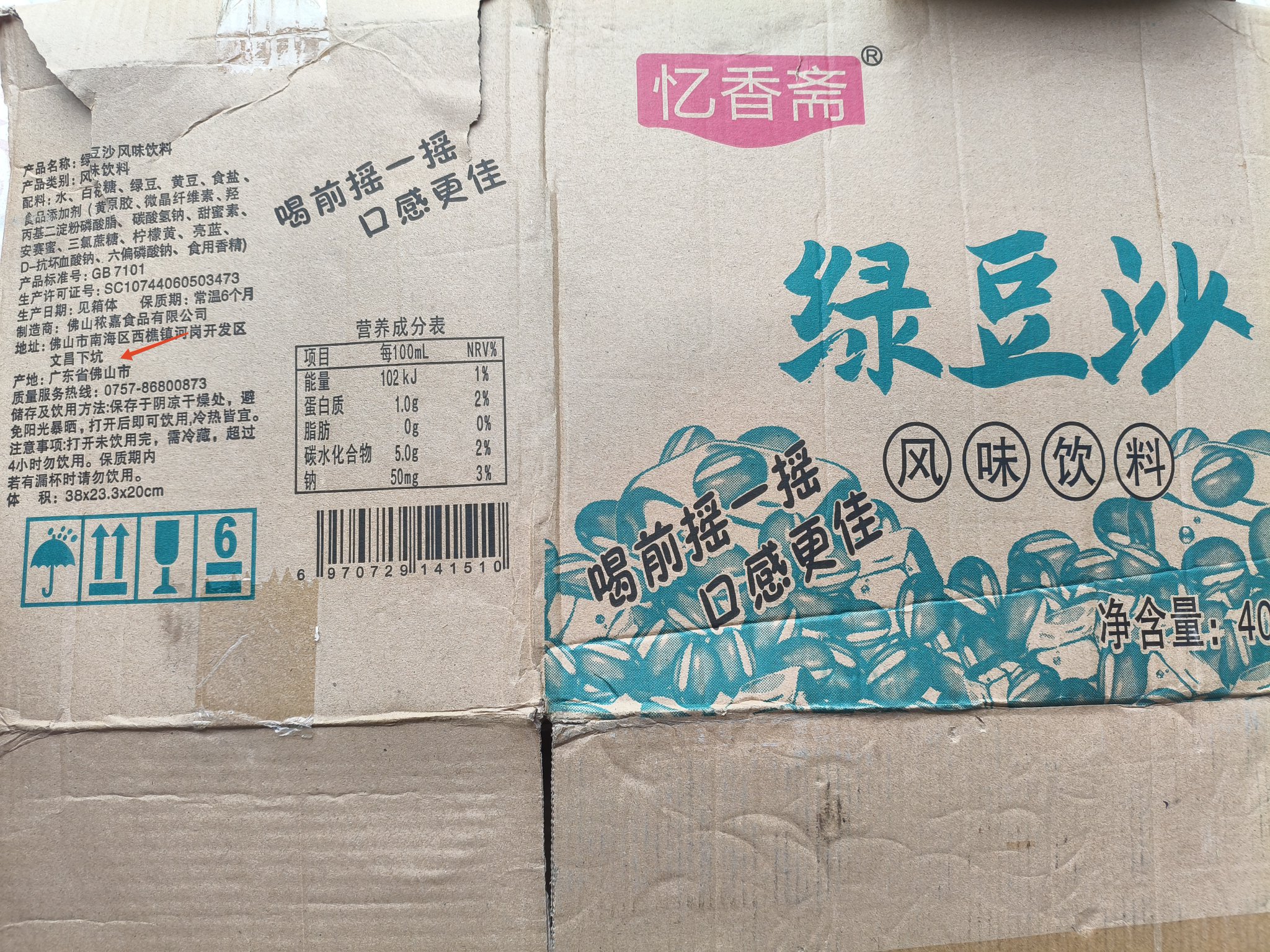 在一家餐饮店垃圾桶边捡到人家丢弃的纸箱,一看,是广东佛山产品,开心,但愿这家餐饮