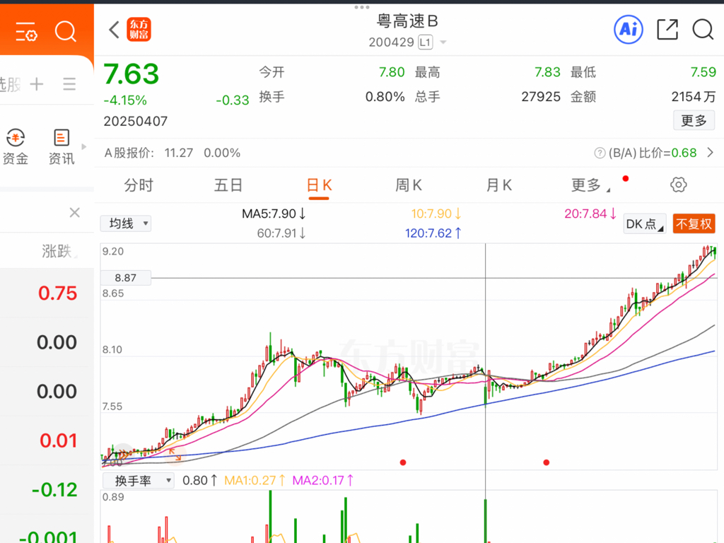 粤高速B(200429)3月14日公佈年报:上看11港元。派息约0.7港元息率7