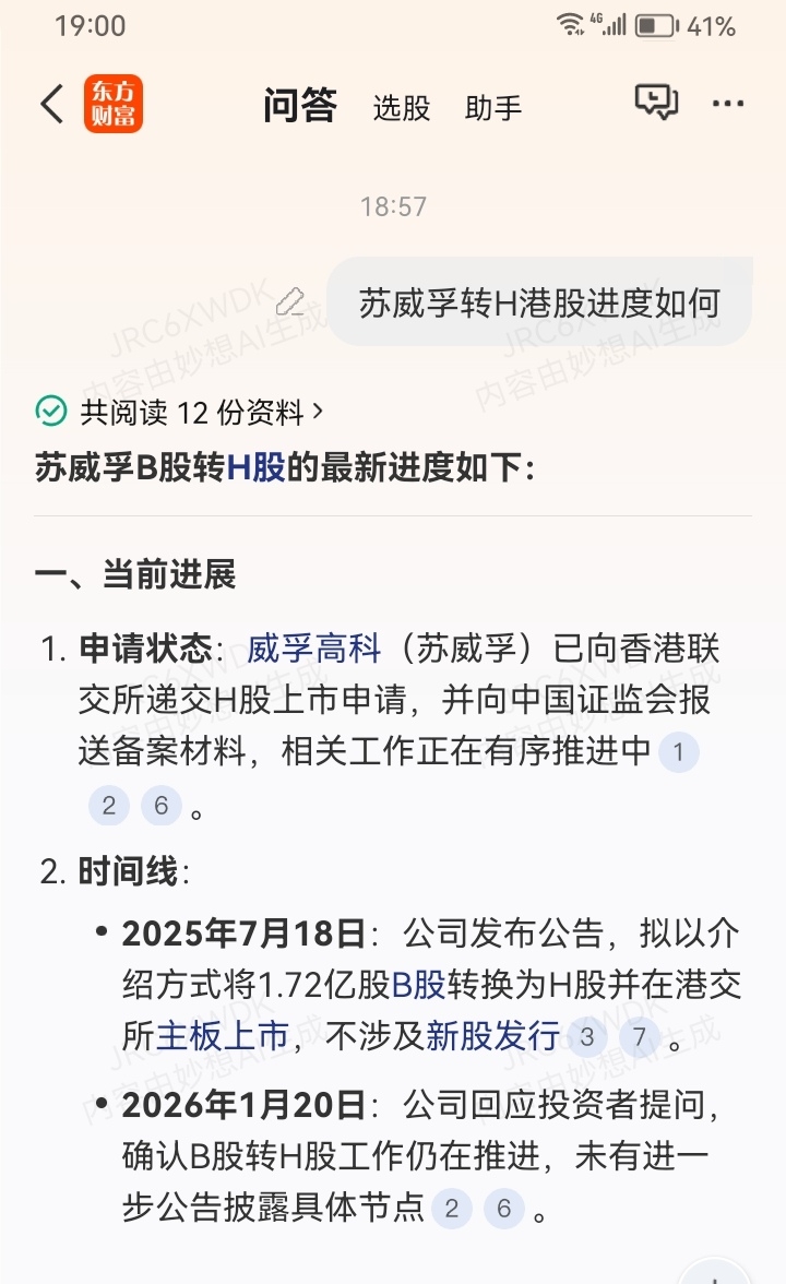 $苏威孚B(SZ200581)$ 转H港股进度!