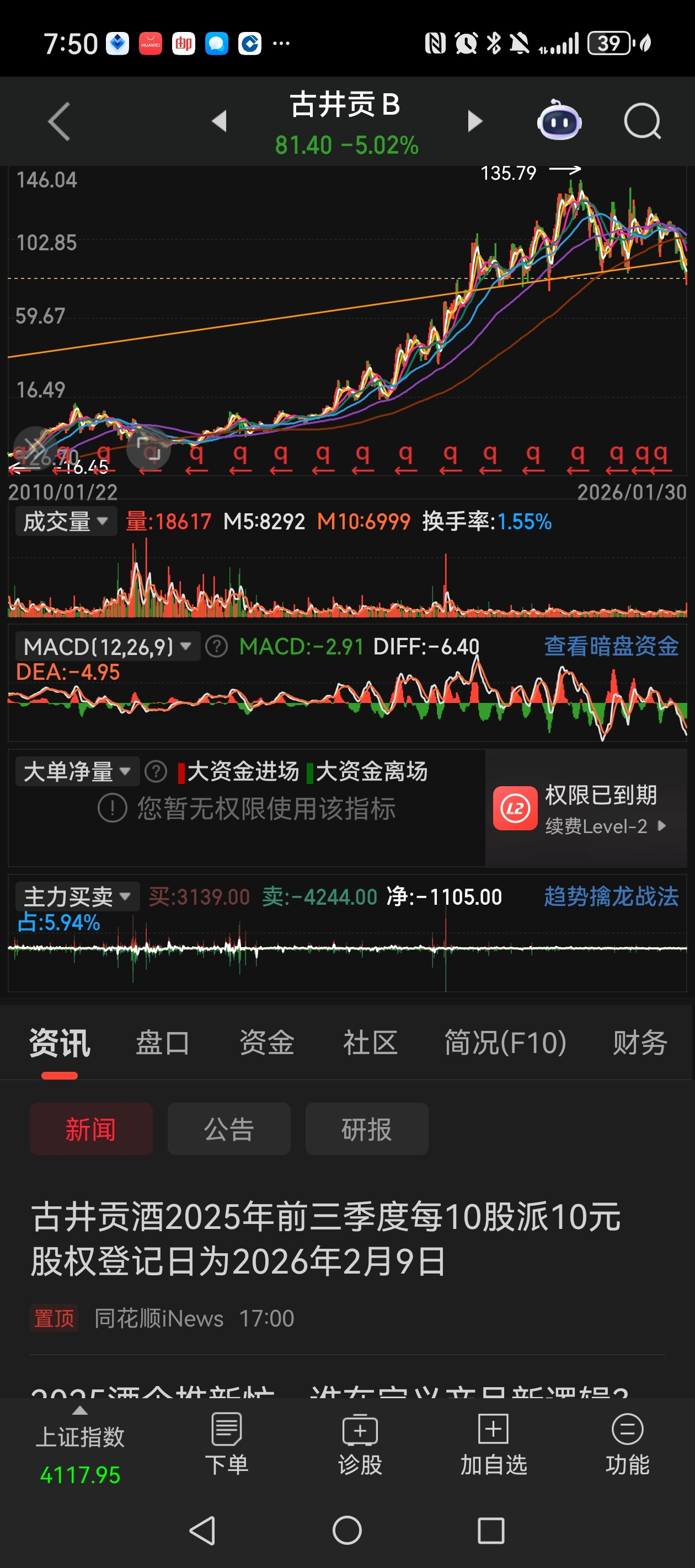 各位大神好古井贡K线图是什么形态?想不想横跨5年的头肩顶?请多多指教