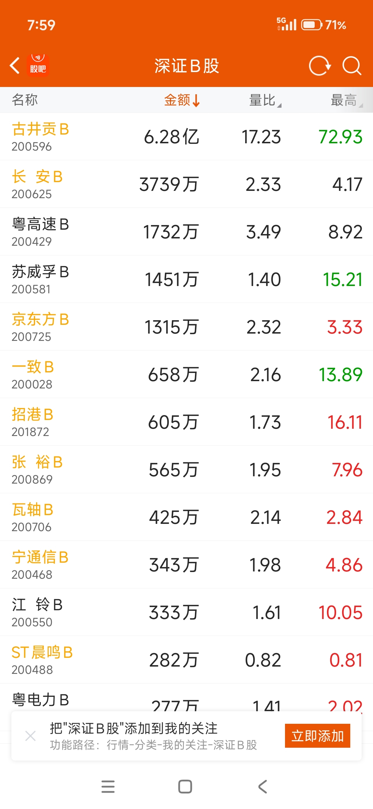 $古井贡B(SZ200596)$ 今天出来的资金如果还在深B市场,会流向哪里,就这么几只,谁能接的住这么大的资金量