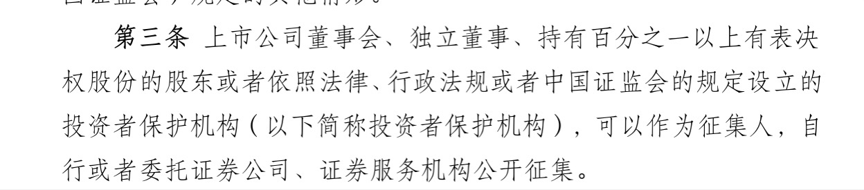 $长 安B(SZ200625)$ $长安汽车(SZ000625)$ 深交所官网有官方的征集股东权利(表决权/提案权)通道,可惜的是使用这个通道也需要有1%的持股门槛,网站从21年到现在,仅4个征集表决权案例。由于和小股东提案权门槛一样高,实际上不能帮助小股东实现股东权利