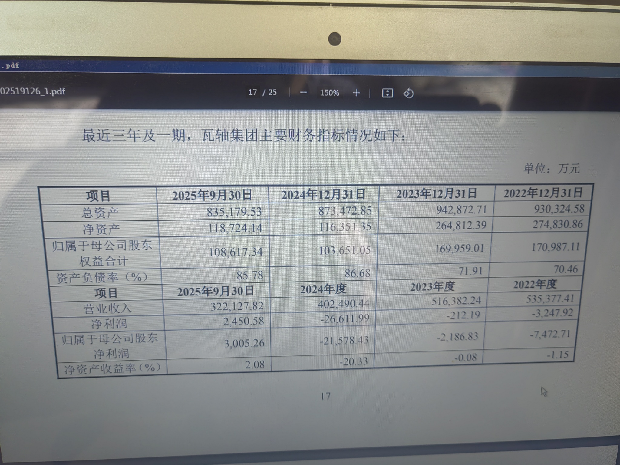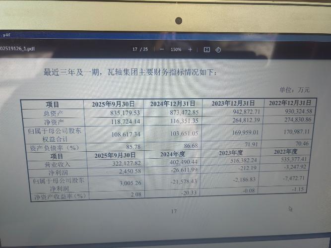 瓦轴集团官方公众号“轴承摇篮”2025年12月10日发布的新闻,文章提到瓦轴集团销售收入达到70亿元,净资产投资回报率达到12%-15%。公开资料可以查到瓦轴集团净资产为30亿元,按12%和15%的平均值13.5%计算得出,瓦轴集团净利润为4.05亿元。