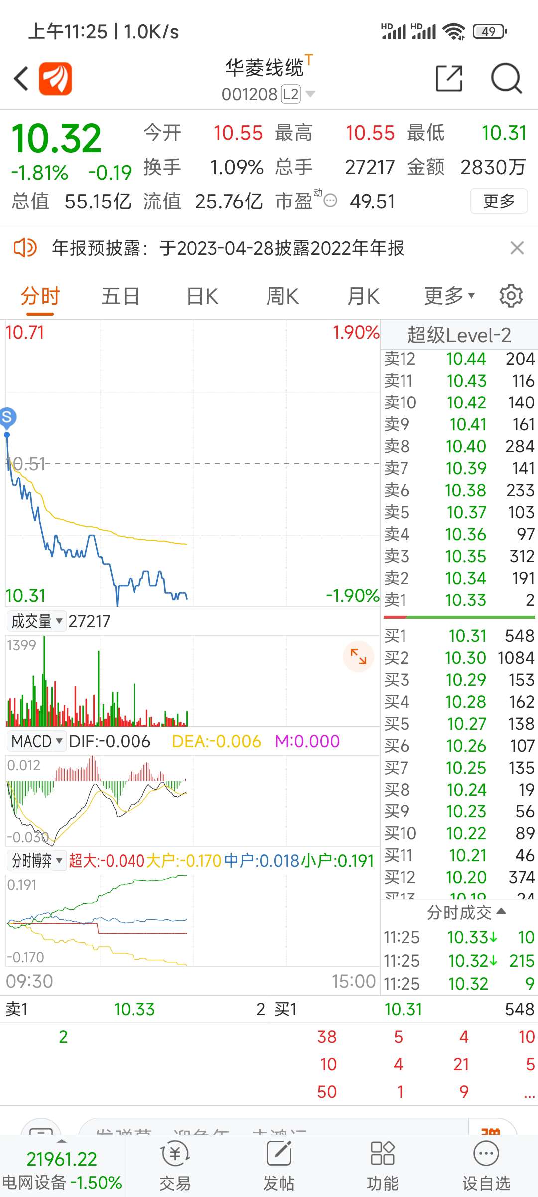 2.1按计划上午以10.42入华菱电缆3层仓,周四收盘竞价前不跌破10.4加仓。